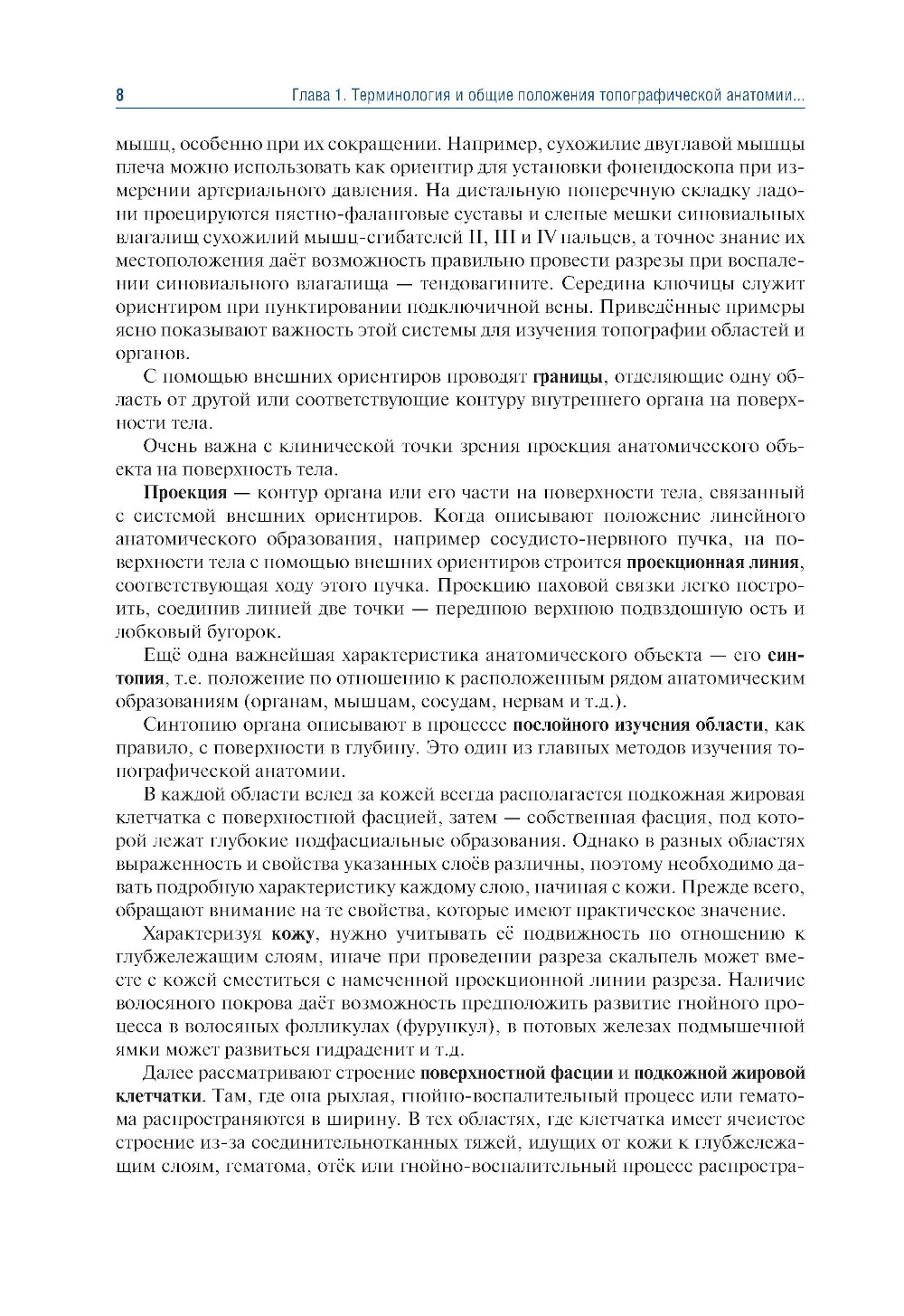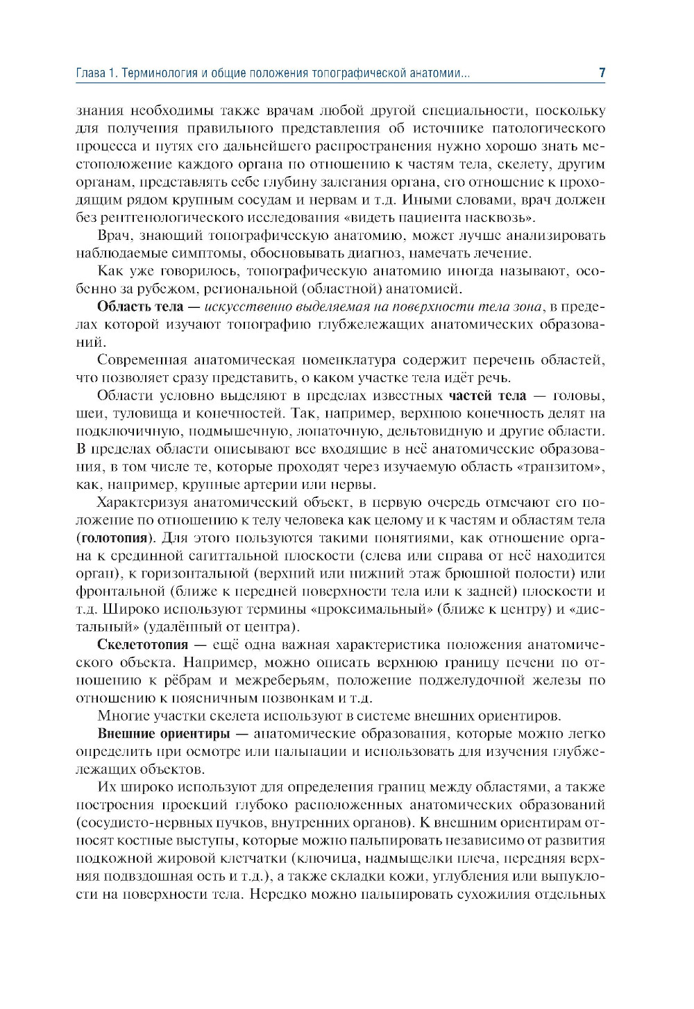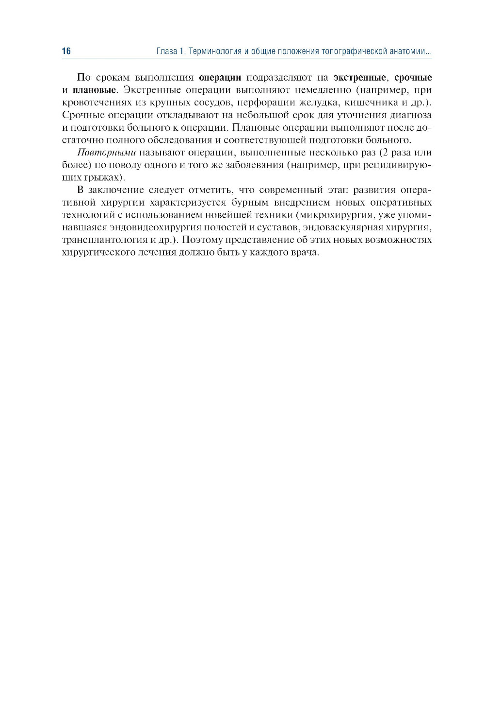 Содержание и объём материала в учебнике соответствуют требованиям федерального государственного образовательного стандарта и примерной программе по топографической анатомии и оперативной хирургии. Изложение материала строго соответствует принципу послойного изучения топографической анатомии областей человеческого тела с использованием международной анатомической номенклатуры (Римская, 1999). По сравнению с двумя предыдущими изданиями улучшен иллюстративный материал, расширены разделы, касающиеся клинических аспектов топографической анатомии. В дополнение к тестам для самопроверки в учебник введены ситуационные задачи. Не приведена глава с методическими материалами по основным элементам оперативной техники, так как на каждой кафедре имеются собственные методические разработки, написанные в соответствии со своим опытом их изложения. Учебник предназначен студентам III-IV курсов лечебных, педиатрических, медико-профилактических, стоматологических и военных факультетов медицинских вузов.| Издательство | ГЭОТАР-Медиа |