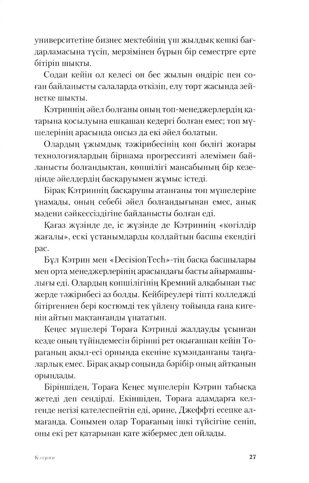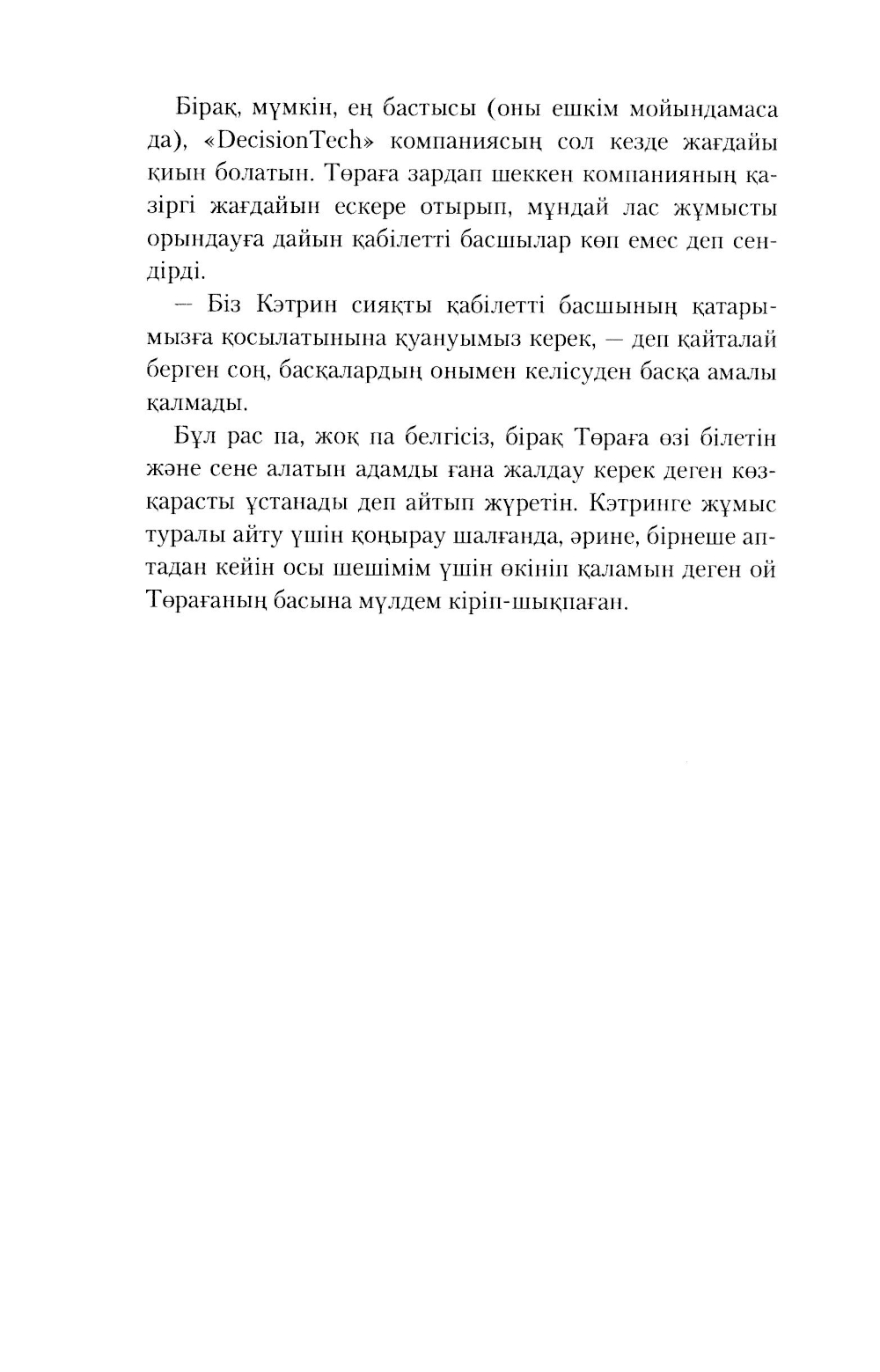 Глава одной высокотехнологичной компании подал в отставку, поскольку работа компании при нем разваливалась на глазах. «Менеджеры достигли совершенства в искусстве подставлять друг друга. Команда утратила дух единства и товарищества, его сменила нудная обязаловка. Любая работа затягивалась, качество падало». Через некоторое время в компанию приходит новый руководитель и обстановка еще больше накаляется - Кэтрин полна решимости разобраться с проблемами команды менеджеров, которые почти привели успешную компанию к краху. Какой ценой, и главное, каким образом ей это в итоге удается, и рассказывает Патрик Ленсиони. Почему возникают «пять пороков команды» - взаимное недоверие, нетребовательность, безответственность, боязнь конфликта и безразличие к результатам, как их диагностировать и что с ними делать? В первой части книги эти вопросы решает Кэтрин со своей командой, а во второй автор приводит подробное описание этих «пять пороков команды» и методы их устранения.| Издательство | Zerde Publishing |