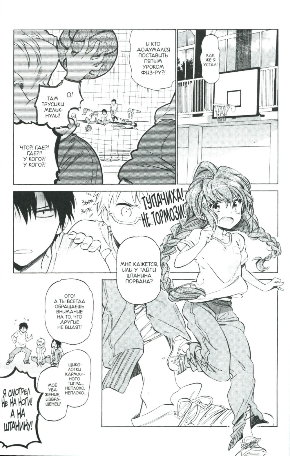 Рюдзи Такасу не повезло с самого рождения: от отца-мафиози он унаследовал устрашающий взгляд, поэтому его, несмотря на мягкий характер, считают самым опасным хулиганом во всей округе. Начинается новый учебный год, и Рюдзи окрылен надеждой - в один с ним класс попали как его единственный друг Китамура, так и девушка его мечты Минори Кусиэда. Но в каждой бочке меда есть ложка дегтя: в том же классе учится миниатюрная, но чрезвычайно опасная Тайга Айсака, которую за суровый нрав прозвали Карманным Тигром. Рюдзи, к своему несчастью, случайно узнаёт её секрет...| Издательство | Фабрика комиксов |
