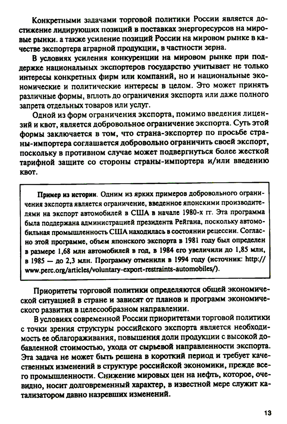Рассматриваются вопросы влияния торговой политики на продвижение национальных интересов: основные направления и инструменты торговой политики, факторы ее формирования, региональные торговые соглашения в качестве инструмента регулирования международной торговли и отдельных компаний, влияние государственного регулирования внешнеторговой деятельности на конкурентоспособность компаний, специфика стимулирования экспорта на основе развития электронной коммерции, валютно-финансовые аспекты торговой политики. Представлены эволюция и особенности внешнеторговой политики России, а также проблемы и перспективы реформирования ВТО.| Издательство | КноРус |