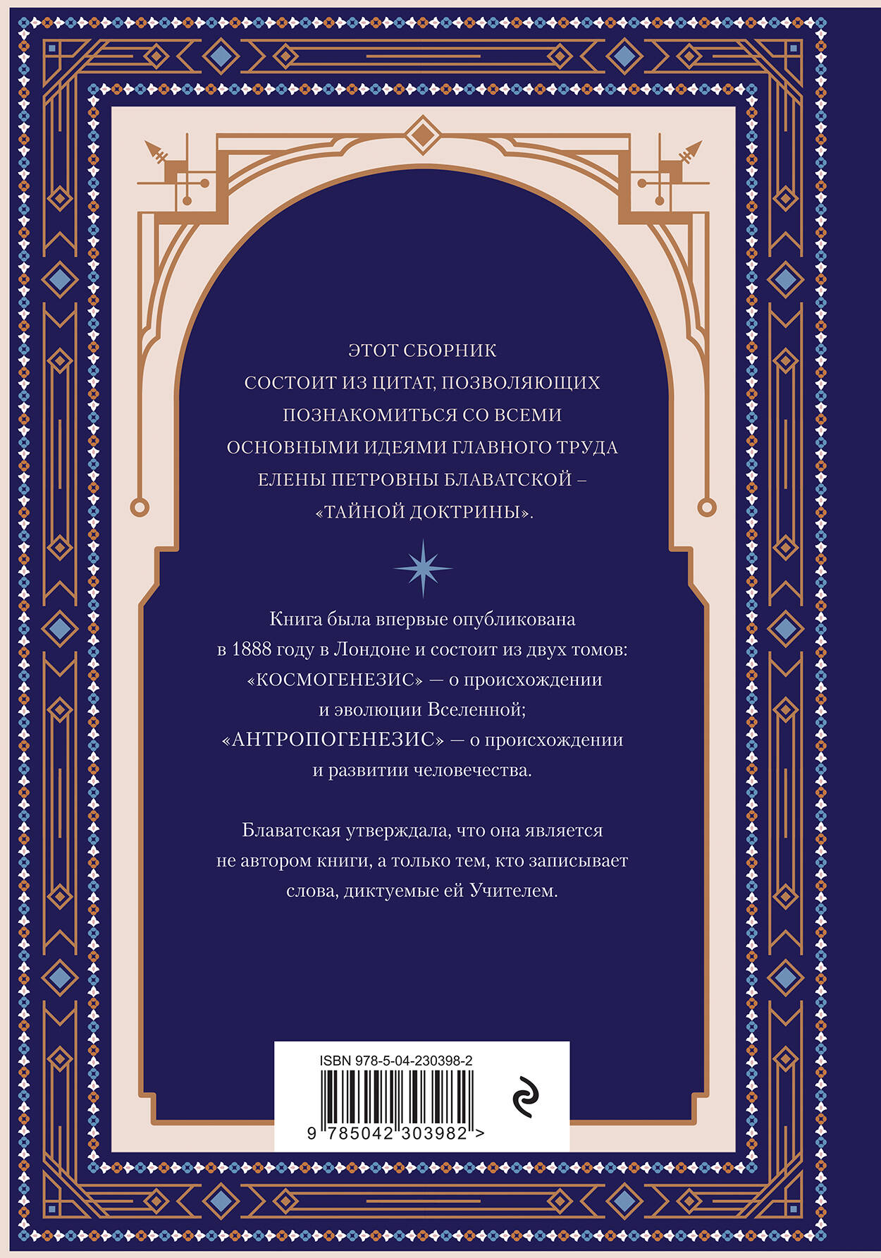 Этот сборник состоит из цитат, позволяющих познакомиться со всеми основными идеями главного труда Елены Петровны Блаватской - «Тайной доктрины». Изящное оформление делает эту книгу прекрасным подарком.| Издательство | ООО "Издательство "Эксмо" |