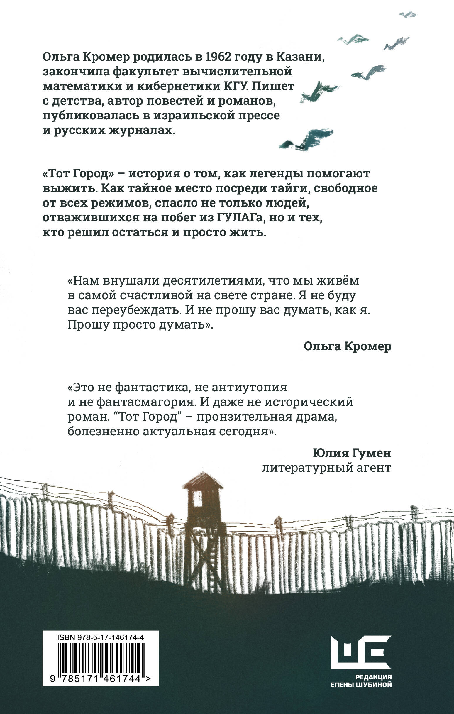 Фантастическая история о побеге из ГУЛАГа. Книга о любви и силе духа, дающей силы на то, чтобы жить, когда жить невозможно. Неисторический роман с фантастическими поворотами сюжета, поисками сокровищ и походами в неизвестность, где суровая реальность лагерного быта расцвечивается силой веры в мечту. В овеянном недоброй славой пространстве оживает легенда о справедливости, милосердии, утешении и прощении. Горькая история непрошедшего времени о неслучившихся судьбах. Книга памяти - той, что невозможно вымарать цензурой и вытравить страхом. «Тот Город» перелистывает страницы ускользающей эпохи, чтобы не забыть и не повторить. Это смелое высказывание и призыв задуматься о том, что делает возможными чудовищные социальные и политические катастрофы и какие необратимые последствия ждут всех, вне зависимости от убеждений и степени вовлеченности.| Издательство | АСТ |