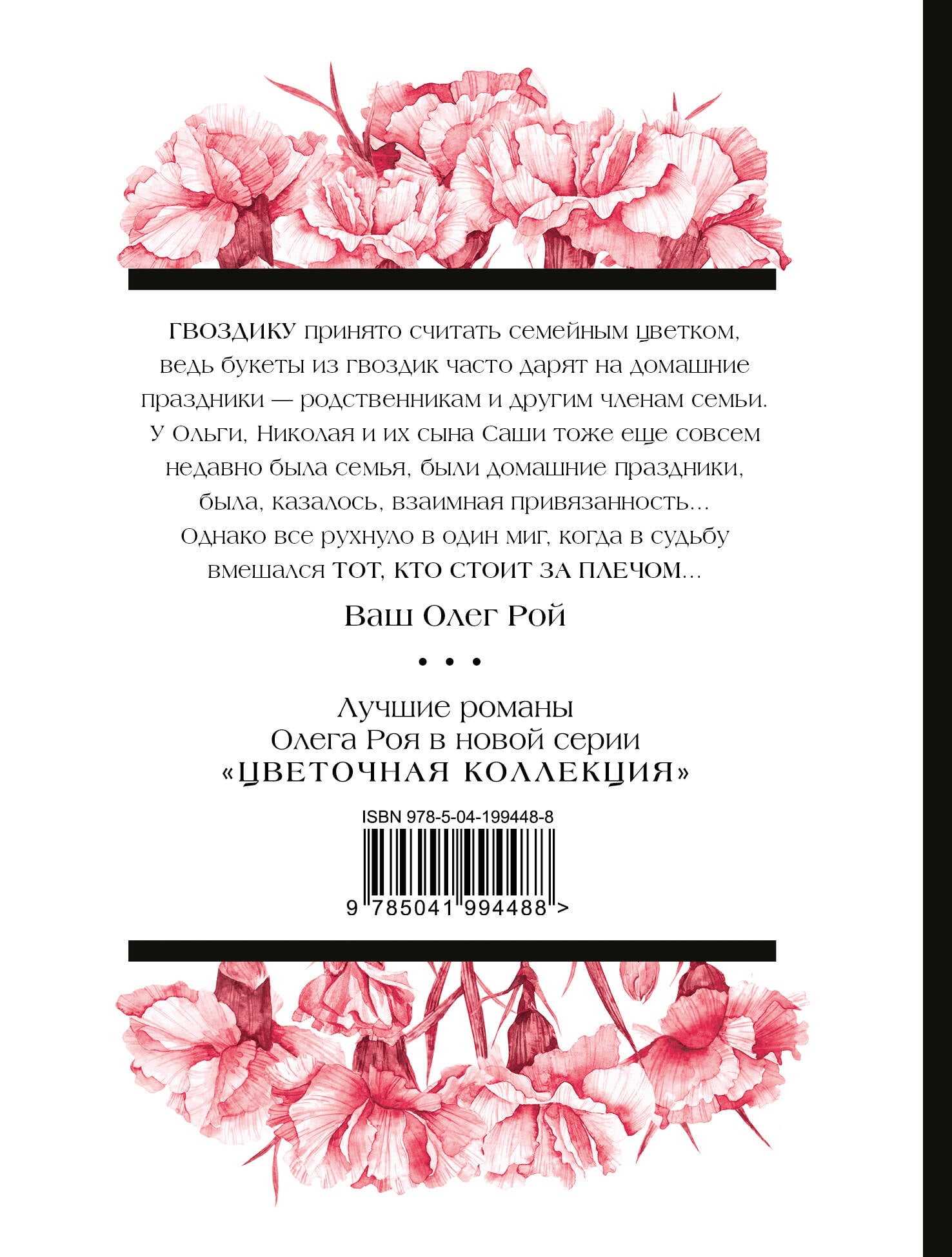ГВОЗДИКУ принято считать семейным цветком, ведь букеты из гвоздик часто дарят на «домашние» праздники - родственникам и другим членам семьи. У Ольги, Николая и их сына Саши тоже ещё совсем недавно была семья, были домашние праздники, была, казалось, взаимная привязанность… Однако всё рухнуло в один миг, когда в судьбу вмешался «ТОТ, КТО СТОИТ ЗА ПЛЕЧОМ»…| Издательство | ООО "Издательство "Эксмо" |