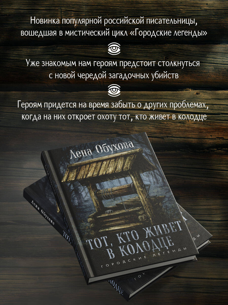 «Тот, кто живет в колодце» - новинка популярной российской писательницы Лены Обуховой, вошедшая в мистический цикл «Городские легенды». Уже знакомым нам героям предстоит столкнуться с новой чередой загадочных убийств. После трех похожих убийств становится очевидно: в Шелково орудует серийный убийца - маньяк, помешанный на мистических городских легендах. Если он останется верен себе, то новое убийство произойдет со дня на день, а у полиции почти нет зацепок. Единственную подсказку подбрасывает Влад, рисуя старый колодец, стоящий посреди леса: следующее преступление должно быть связано с этим местом. Сам Влад по-прежнему пытается выяснить, что произошло в тот день, когда он попал в аварию и потерял зрение, а заодно разобраться в усложнившихся отношениях с Юлей. Юля, в свою очередь, пытается понять причину происходящих с ней изменений. Но всем героям придется на время забыть о других проблемах, когда на них откроет охоту тот, кто живет в колодце.| Издательство | ООО "Издательство "Эксмо" |
