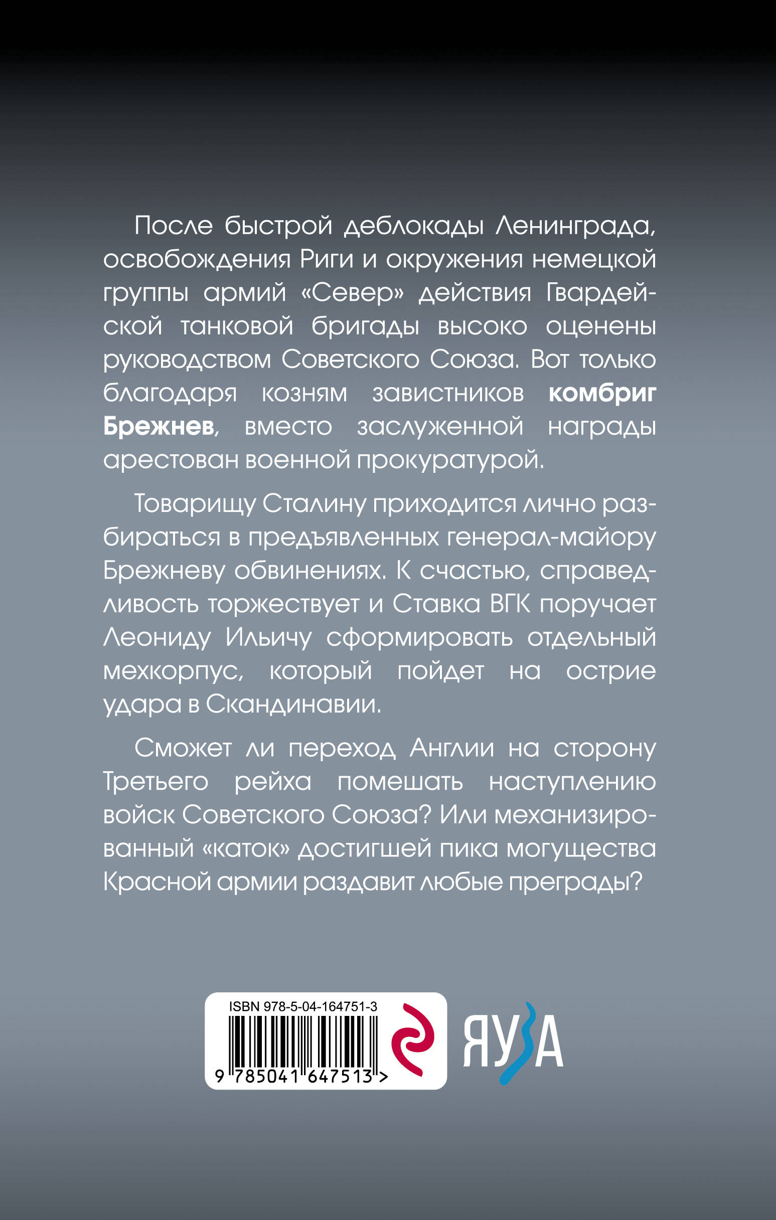 После быстрой деблокады Ленинграда, освобождения Риги и окружения немецкой группы армий «Север» действия Гвардейской танковой бригады высоко оценены руководством Советского Союза. Вот только, благодаря козням завистников, комбриг Брежнев, вместо заслуженной награды, арестован военной прокуратурой. Товарищу Сталину приходится лично разбираться в предъявленных генерал-майору Брежневу обвинениях. К счастью, справедливость торжествует, и Ставка ВГК поручает Леониду Ильичу сформировать отдельный мехкорпус, который пойдет на острие удара в Скандинавии. Сможет ли переход Англии на сторону Третьего рейха помешать наступлению войск Советского Союза? Или механизированный «каток» достигшей пика могущества Красной Армии раздавит любые преграды?| Издательство | Эксмо |
