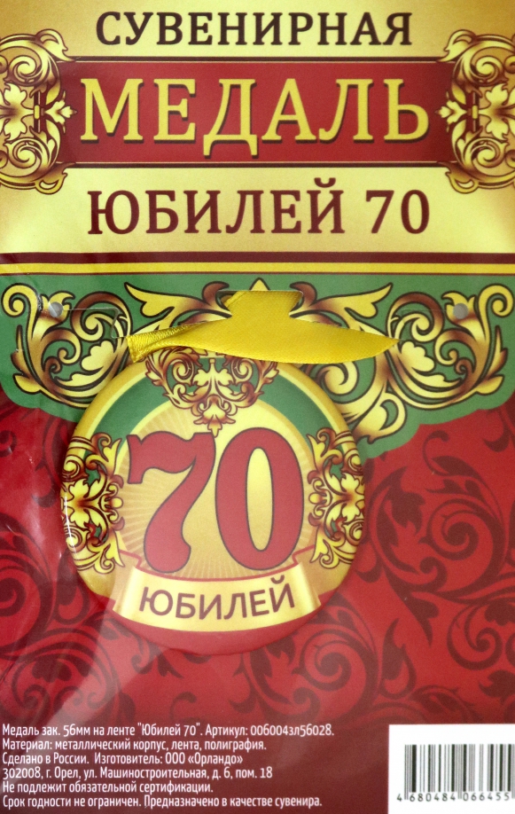 Медаль закатная "Юбилей 70", 56 мм