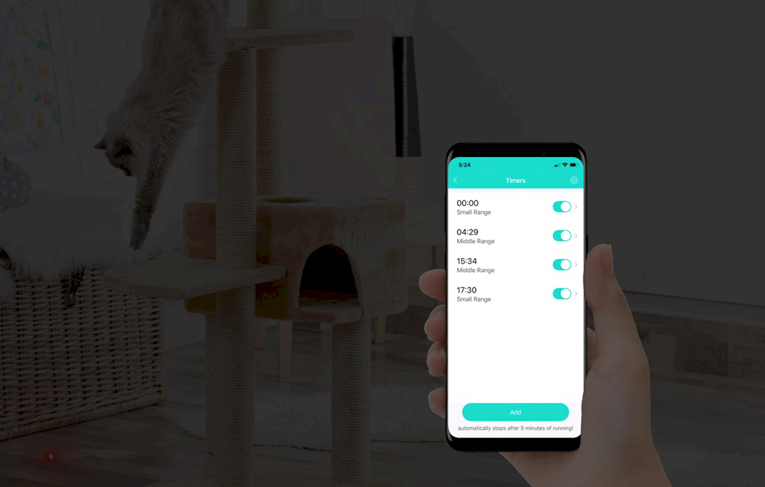 Соедините Smart Dot с приложением, чтобы получить еще больше возможностей. Это позволяет вам, например, установить индивидуальное расписание игр для ваших кошек. Установите часы, в которых устройство должно работать, а также конкретные режимы работы. Удивите своих питомцев и позвольте им весело провести время, даже когда вы находитесь вдали от дома.