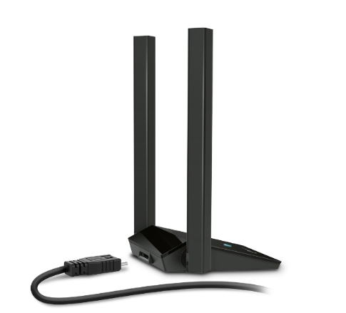 Этот адаптер Wi-Fi обеспечивает высокоскоростную беспроводную передачу, что обеспечивает бесперебойную потоковую передачу видео в диапазонах 5 ГГц и 2,4 ГГц. Он имеет две антенны с высокой пропускной способностью, которые позволяют подключаться к более удаленным точкам сети с качественным сигналом. Использование таких технологий, как MU-MIMO и OFDMA, помогает поддерживать высокую скорость загрузки и выгрузки, даже когда вашу сеть используют другие устройства. Адаптер также имеет соединение USB 3.0 для быстрой передачи данных и предлагает новейшее шифрование WPA3 для защиты данных.