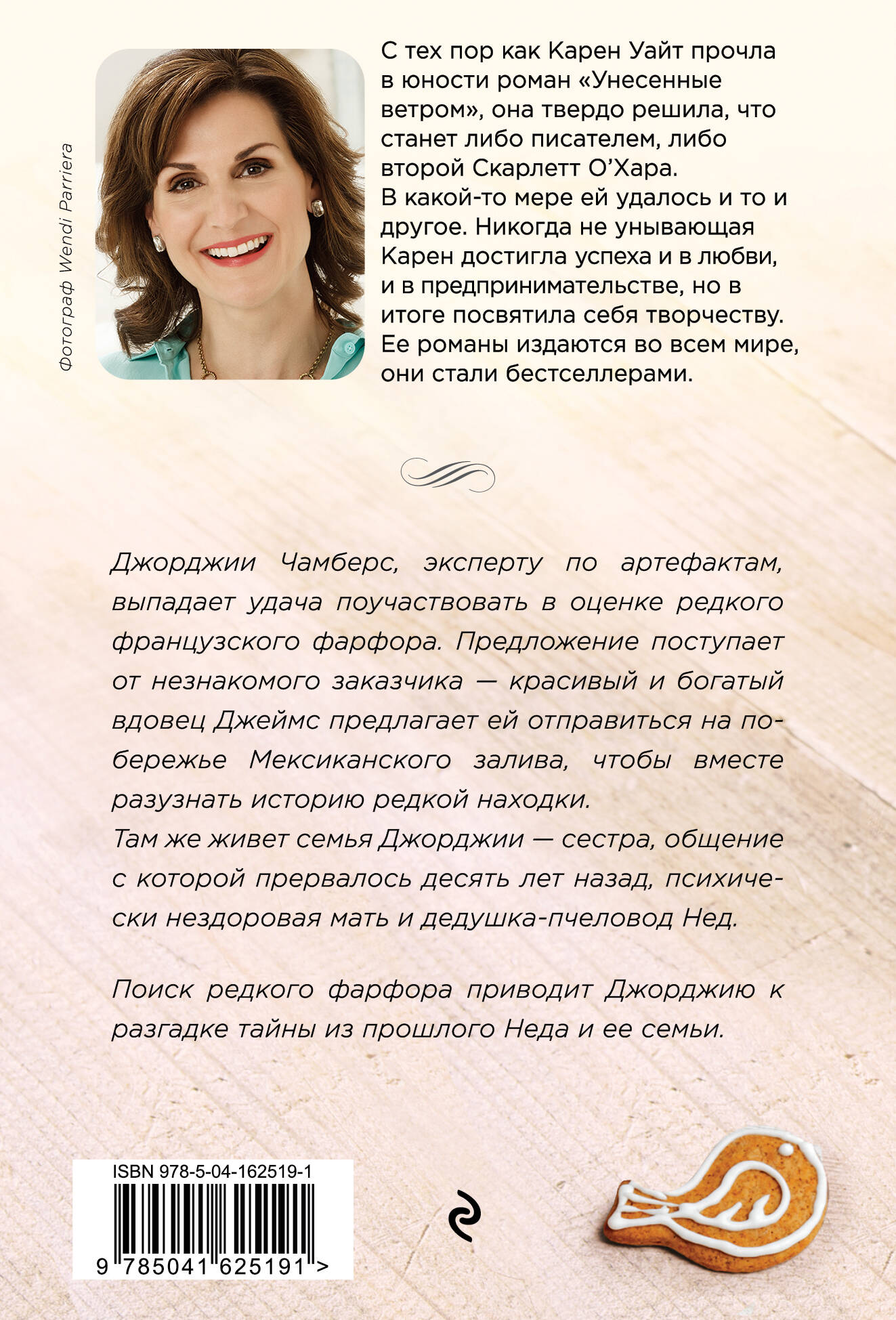 Джорджии Чамберс, эксперту по артефактам, выпадает удача поучаствовать в оценке редкого французского фарфора. Предложение поступает от незнакомого заказчика - красивый и богатый вдовец Джеймс предлагает ей отправиться на побережье Мексиканского залива, чтобы вместе разузнать историю редкой находки. Там же живет семья Джорджии - сестра, общение с которой прервалось десять лет назад, психически нездоровая мать и дедушка-пчеловод Нед. Поиск редкого фарфора приводит Джорджию к разгадке тайны из прошлого Неда и ее семьи. ** Карен Уайт - популярная американская писательница, автор более двух десятков романов. Самый продаваемый автор «The New York Times» и «USA Today», обладательница «SIBA Book Award» и RITA Awards в категории «Автор романтической прозы». Писательница также дважды удостаивалась престижной награды National Readers' Choice Award. Живет в Атланте, Джорджия, с мужем, двумя детьми и собакой. Сочетание захватывающего сюжета и легкого слова делает роман Уайт одним из лучших образцов романтической прозы, где в центре повествования находится эволюция чувств и эмоций главных героев. «Проза Карен Уайт лирична, автор виртуозно вплетает в ткань повествования элементы романтизма. Превосходный роман». - Booklist| Издательство | Эксмо |