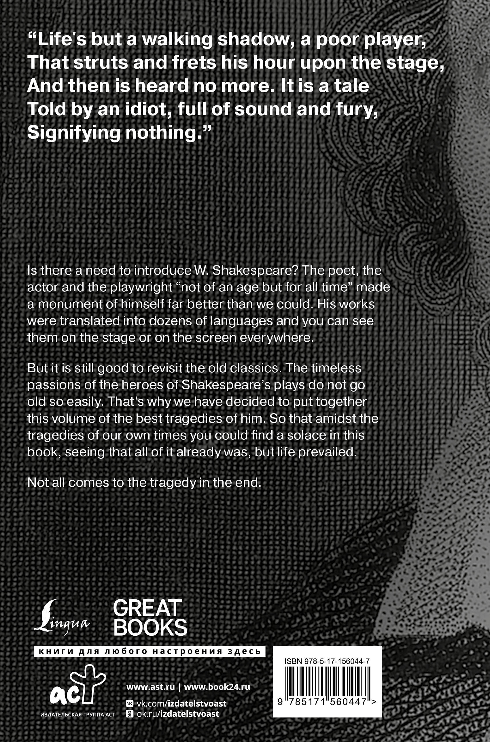 Аннотация: Tragedies: The Tragedy of Hamlet, Prince of Denmark; Romeo and Juliet; Macbeth