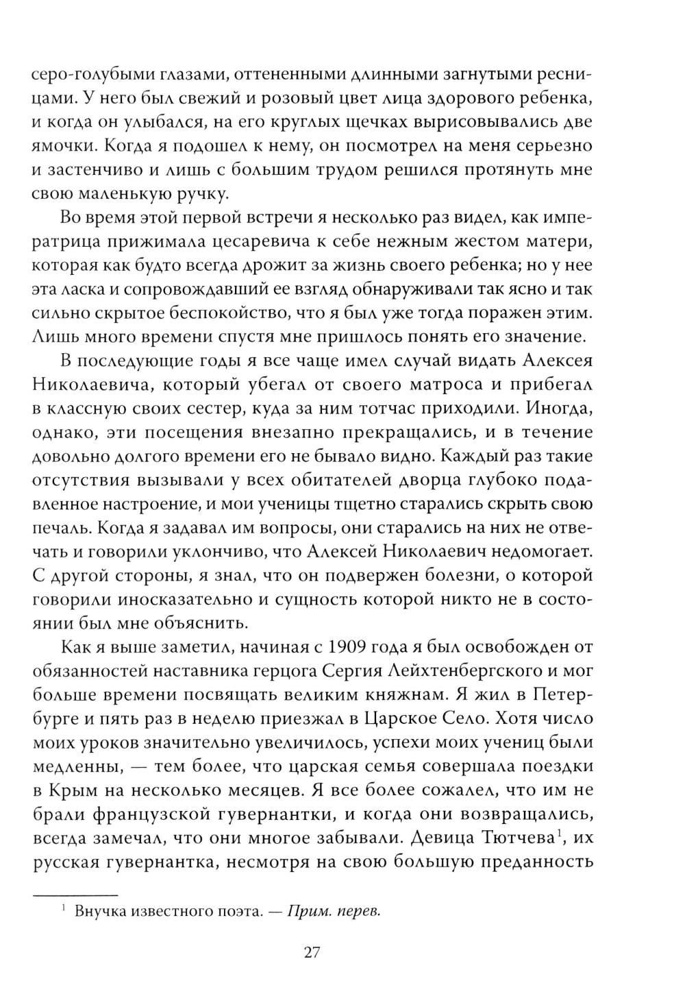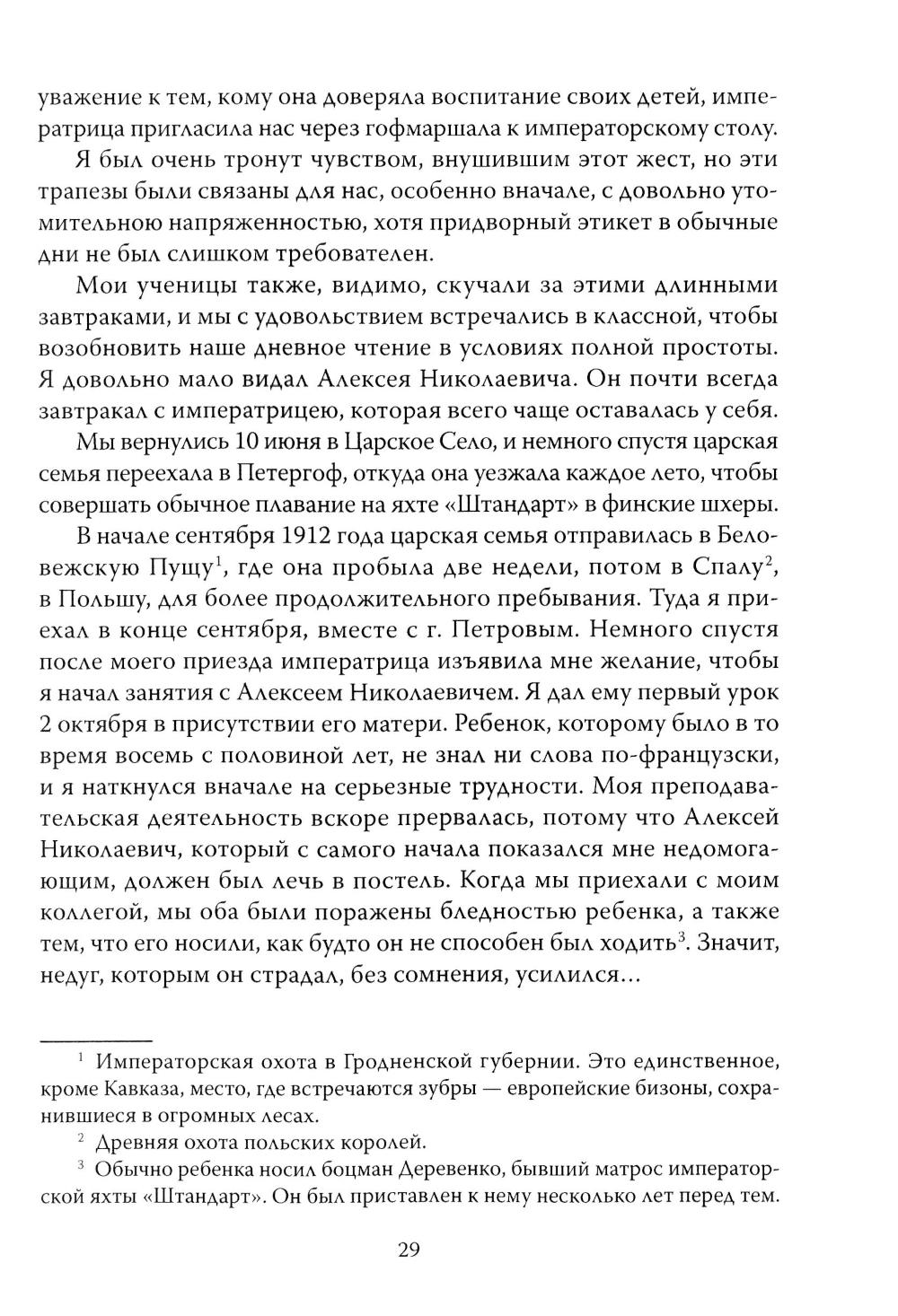 Пьер Жильяр (1879-1962) - преподаватель французского языка, родом из Швейцарии. В 1904 году окончил Лозаннский университет. Был приглашён в Россию преподавать французский язык детям герцога Лейхтенбергского. В сентябре 1905 году ему было предложено учить французскому детей Николая II. С 1913 года наставник цесаревича Алексея Николаевича. После свержения Николая II сопровождал его семью в ссылку в Тобольск, но по прибытии в Екатеринбург был отделён от Романовых. После убийства царской семьи остался в Сибири, где помогал следователю Николаю Соколову, а также разоблачил самозванца, выдававшего себя за цесаревича Алексея Николаевича. В 1920 году вернулся в Швейцарию| Издательство | Родина |