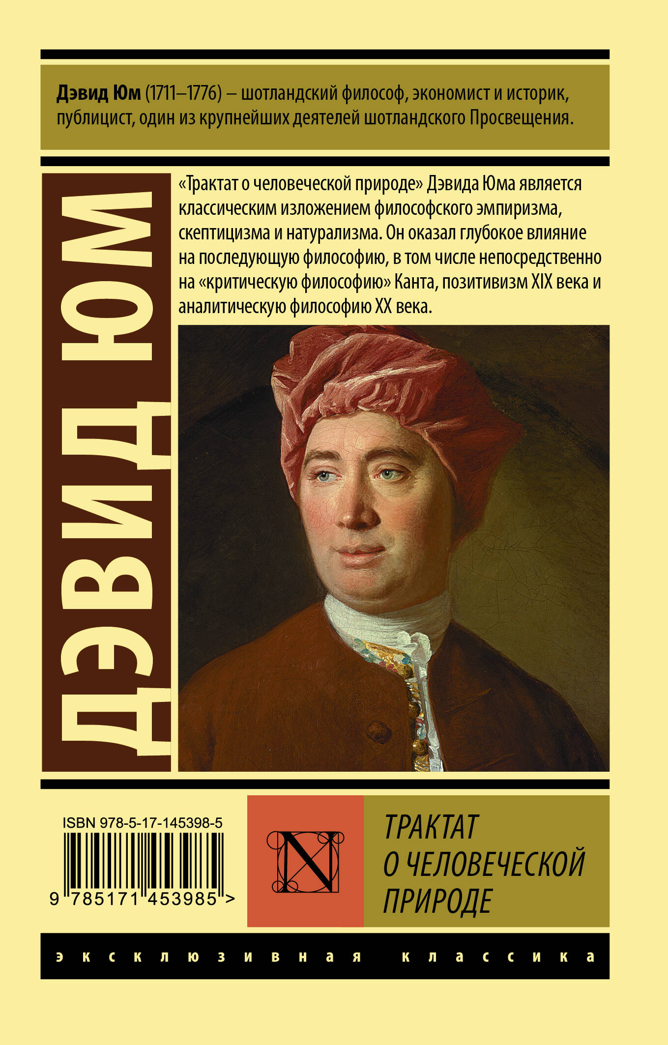 Дэвид Юм (1711-1776) - шотландский философ, экономист и историк, публицист, один из крупнейших деятелей шотландского Просвещения. "Трактат о человеческой природе" Дэвида Юма является классическим изложением философского эмпиризма, скептицизма и натурализма. Он оказал глубокое влияние на последующую философию, в том числе непосредственно на "критическую философию" Канта, позитивизм XIX века и аналитическую философию ХХ века.| Издательство | ИЗДАТЕЛЬСТВО "АСТ" |