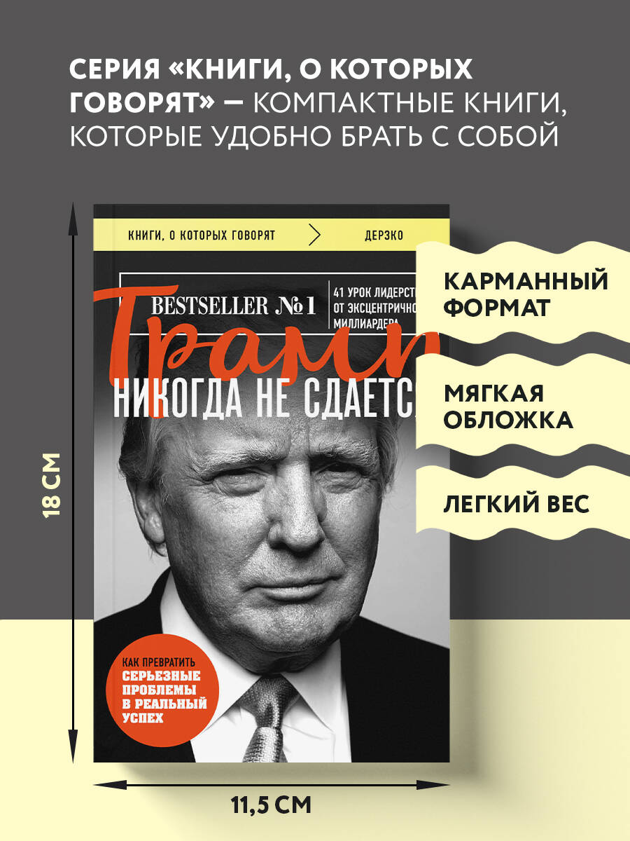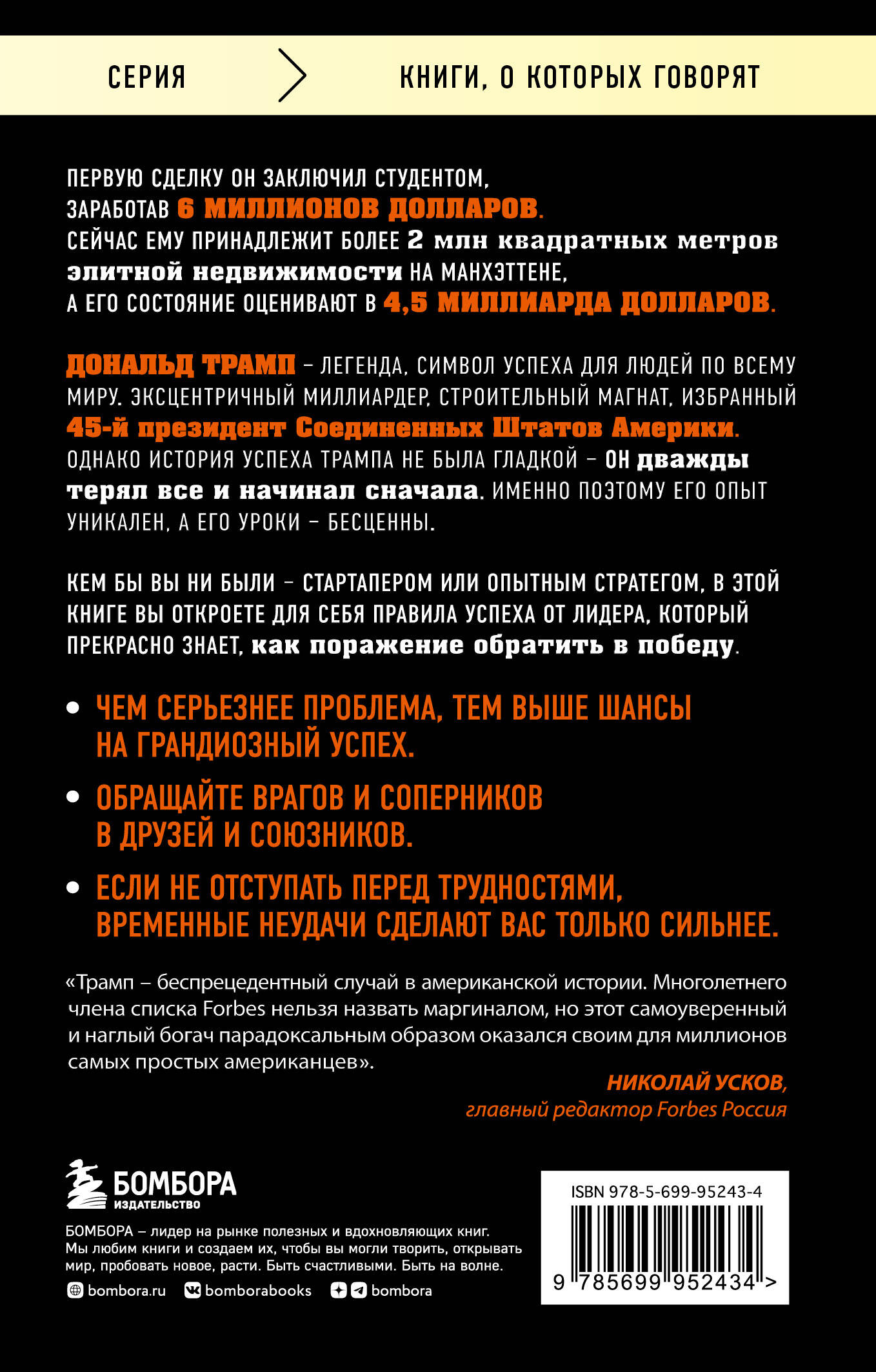 Первую сделку он заключил студентом, заработав 6 миллионов долларов. Сейчас ему принадлежит более 2 млн квадратных метров элитной недвижимости на Манхэттене. А его состояние оценивают в 4,5 миллиарда долларов. Дональд Трамп - легенда, символ успеха для людей по всему миру. Эксцентричный миллиардер, строительный магнат, президент Америки. Однако история успеха Трампа не была гладкой - он дважды терял все и начинал сначала. Именно поэтому его опыт уникален, а его уроки - бесценны. Кем бы вы ни были - стартапером или опытным стратегом, в этой книге вы откроете для себя правила успеха от лидера, который прекрасно знает, как поражение обратить в победу. Следуя урокам лидерства Дональда Трампа, вы сможете найти выход из сложной ситуации в карьере и бизнесе и превратить свои проблемы в реальный успех. - Чем серьезнее проблема, тем выше шансы на грандиозный успех. - Обращайте врагов и соперников в друзей и союзников. - Если не отступать перед трудностями, временные неудачи сделают вас только сильнее. «Трамп - беспрецедентный случай в американской истории. Конечно, за кресло президента США и в прошлом боролись крупные бизнесмены. Но за всю 240-летнюю историю США ни один из них не смог подойти так близко к дверям Овального кабинета. Трамп чужой как для политического класса США, так и для Республиканской партии, которую представляет. Его впечатляющая кампания - вызов американскому истеблишменту, и безусловно станет предметом самого пристального изучения, независимо от итогов выборов. Книга, которую вы держите в руках, помогает многое понять в характере и повадках ее автора. Многолетнего члена списка Forbes нельзя назвать маргиналом, но этот самоуверенный и наглый богач парадоксальным образом оказался своим для миллионов самых простых американцев». - Николай Усков, главный редактор Forbes Россия| Издательство | ООО "Издательство "Эксмо" |