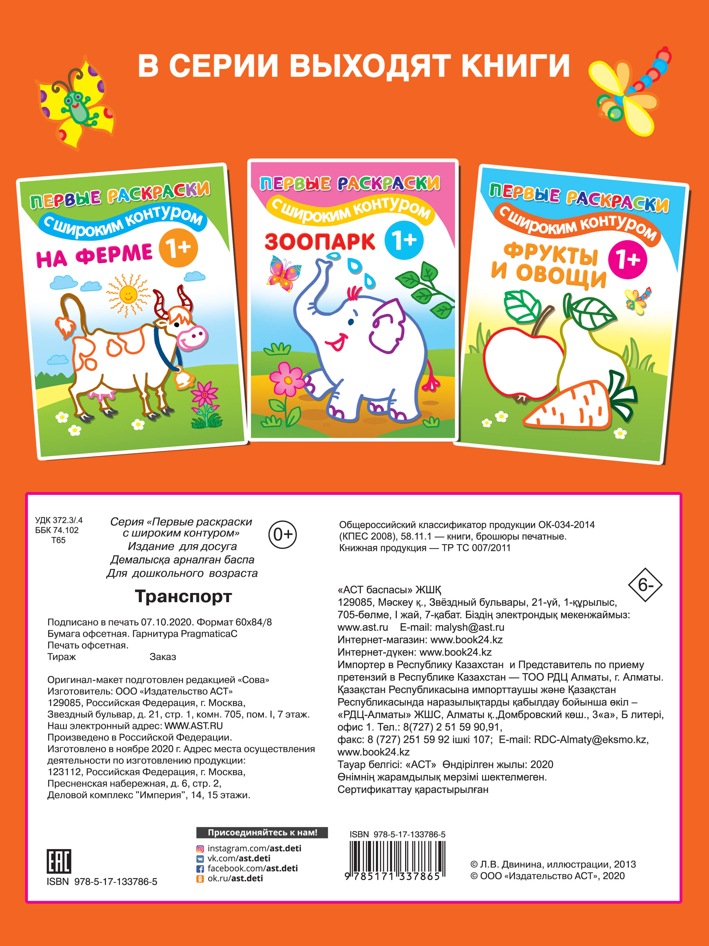 О чем эта книга Красочная развивающая раскраска - это забавные картинки машинок с широким контуром для самых маленьких. Кому эта книга будет интересна Это издание - отличный подарок для самых маленьких художников. Каковы особенности этой книги • Уникальная раскраска для самых маленьких художников позволит ребёнку интересно и полезно провести время. • Все картинки ориентированы на самых маленьких художников, которые только учатся раскрашивать и рисовать. • Широкая контурная полоса поможет раскрасить картинку аккуратно. • Отличная книжка для развития творческого потенциала, воображения, мелкой моторики малыша. Занимайтесь вместе с малышом, пусть он почувствует себя участником творческого процесса!| Издательство | ИЗДАТЕЛЬСТВО "АСТ" |