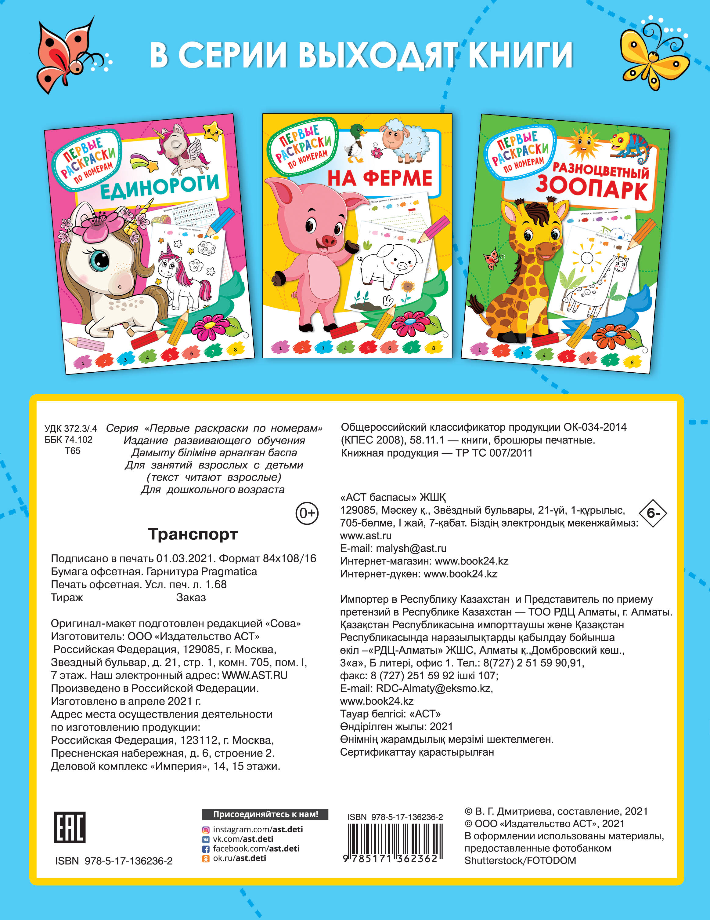 О чем эта книга Новая увлекательная книжка в серии «Первые раскраски по номерам» - путешествие в мир арифметических раскрасок, логических задачек и графических диктантов. Кому эта книга будет интересна Это книга веселых интеллектуальных игр для настоящих умников и умниц. Каковы особенности этой книги • Раскрашивание картинок по номерам - прекрасное занятие для развития мелкой моторики, наблюдательности, смекалки и знакомства с цифрами. • Ребенок будет раскрашивать картинки с числами и примерами на сложение и вычитание - и получит навыки счета от 1 до 10. • Выполняя графические диктанты, дошкольники учатся ориентироваться на листе бумаги, осваивают понятия «вверх», «вниз», «влево», «вправо». • Простые и интересные задания тренируют графические навыки, развивают образное мышление и воображение, сообразительность и логику. • Книжка помогает раскрыть творческий потенциал ребенка, дарит ему множество положительных эмоций. Раскрашиваем картинки с числами и примерами, развиваем логику, внимание, осваиваем счет до 10!