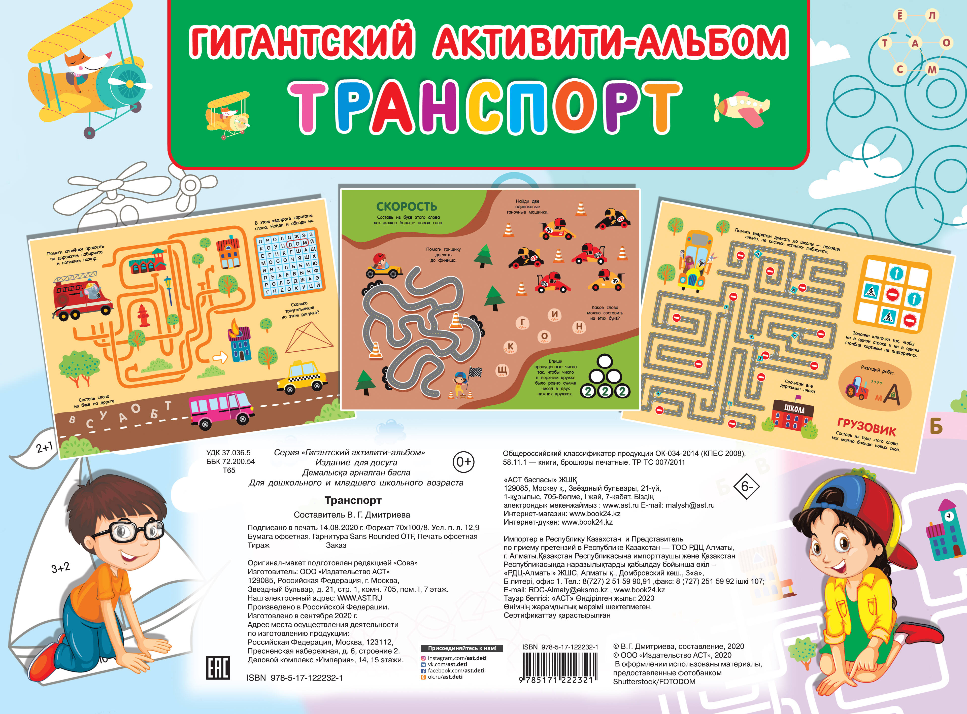 О чём эта книга «Транспорт» - это большой альбом с заданиями, которые помогут ребёнку потренировать память и внимание, расширить кругозор, пополнить словарный запас. На 32 красочно оформленных отрывных листах малыш найдёт ребусы и задачки на логику, кроссворды и лабиринты, игры с буквами и словами, а также многое, многое другое. Кому эта книга будет интересна Активити-альбом «Транспорт» понравится всем ребятам дошкольного возраста. Каковы особенности этой книги • Множество интересных и разнообразных заданий на каждой странице книги. • В разделе ответов можно узнать, как решается то или иное задание. • Большой формат и красочные иллюстрации.