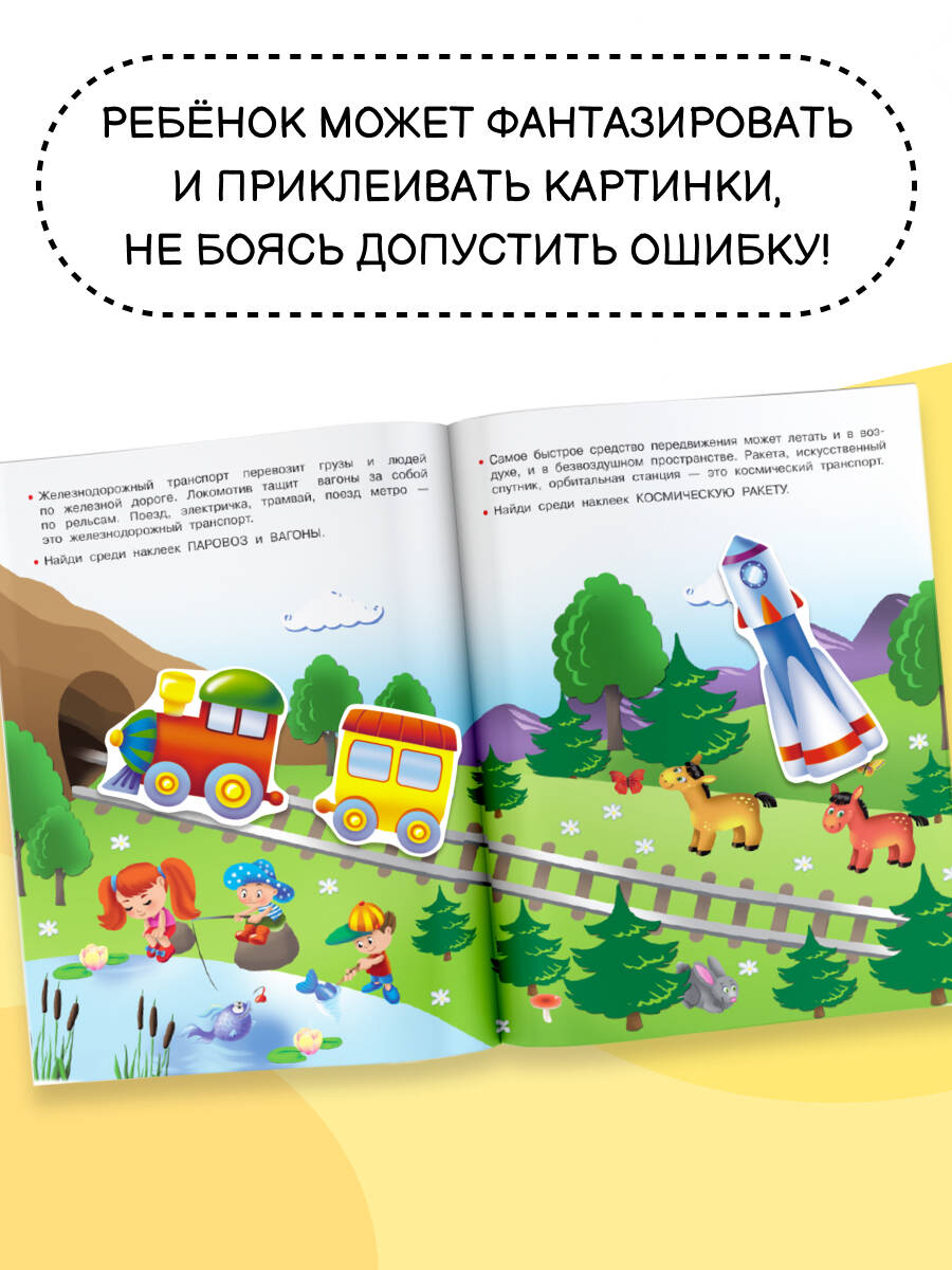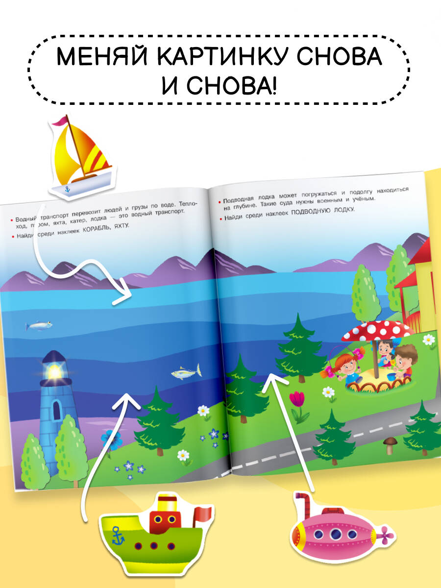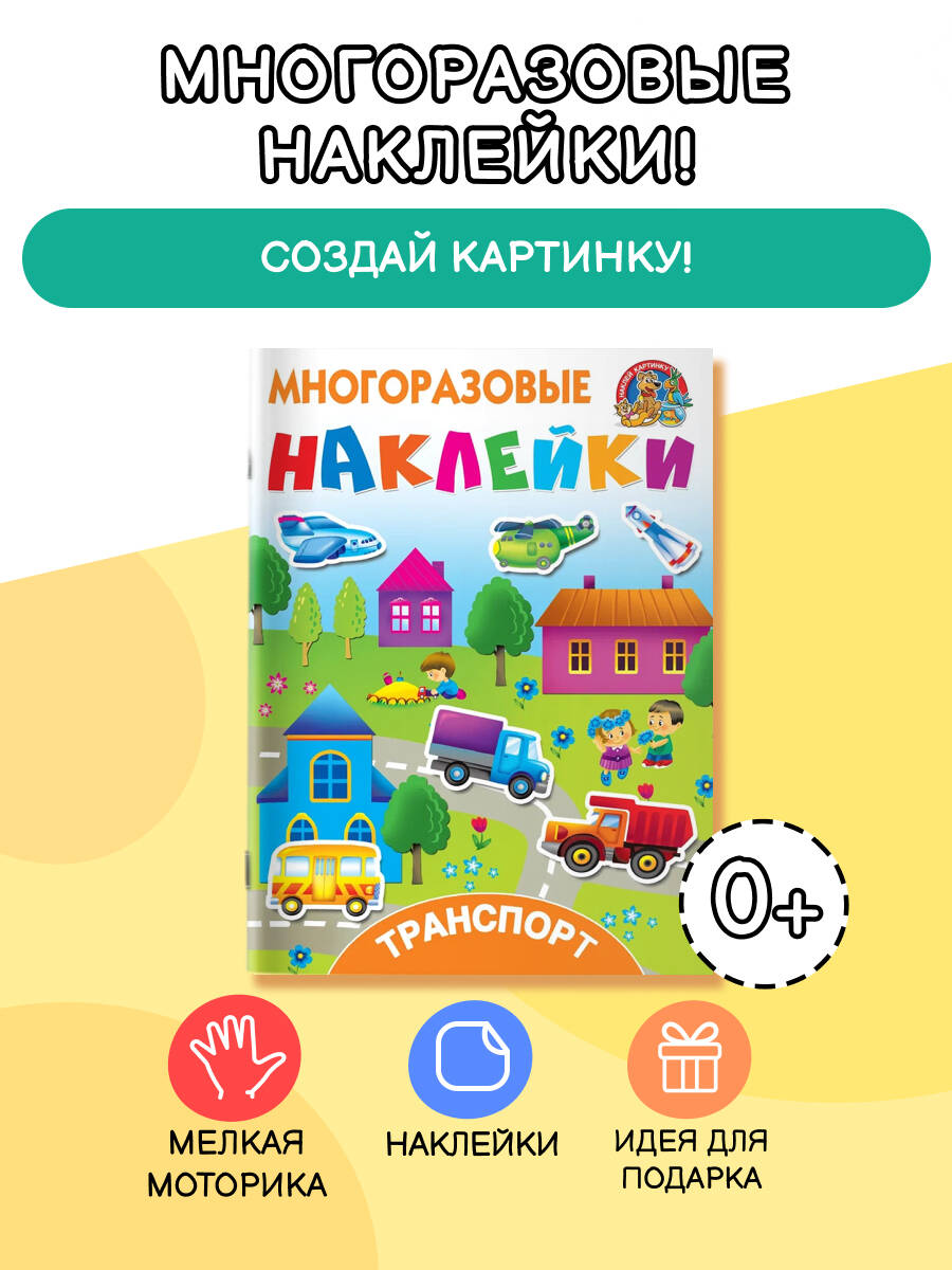 О чем эта книга Это познавательная книжка для развития мышления, внимания, логики, мелкой моторики, а также коллекция чудесных многоразовых наклеек. Кому эта книга будет интересна Книжка-игра для малышей, которые хотят больше узнать об окружающем мире, запомнить названия видов транспорта. Каковы особенности этой книги - Покажите ребёнку, как выполнять задания и подбирать нужные наклейки. Малыш удивится и обрадуется - стикеры можно приклеивать на страницы книги много-много раз. - Автомобили, корабли, самолёты - под одной обложкой. - Каждая страница книги - самое настоящее игровое поле: дружной компанией ребят можно устраивать авиа-шоу, авторалли или морские регаты. - С наклейками знакомство с миром автотехники станет для ребенка запоминающимся праздником.| Издательство | ИЗДАТЕЛЬСТВО "АСТ" |