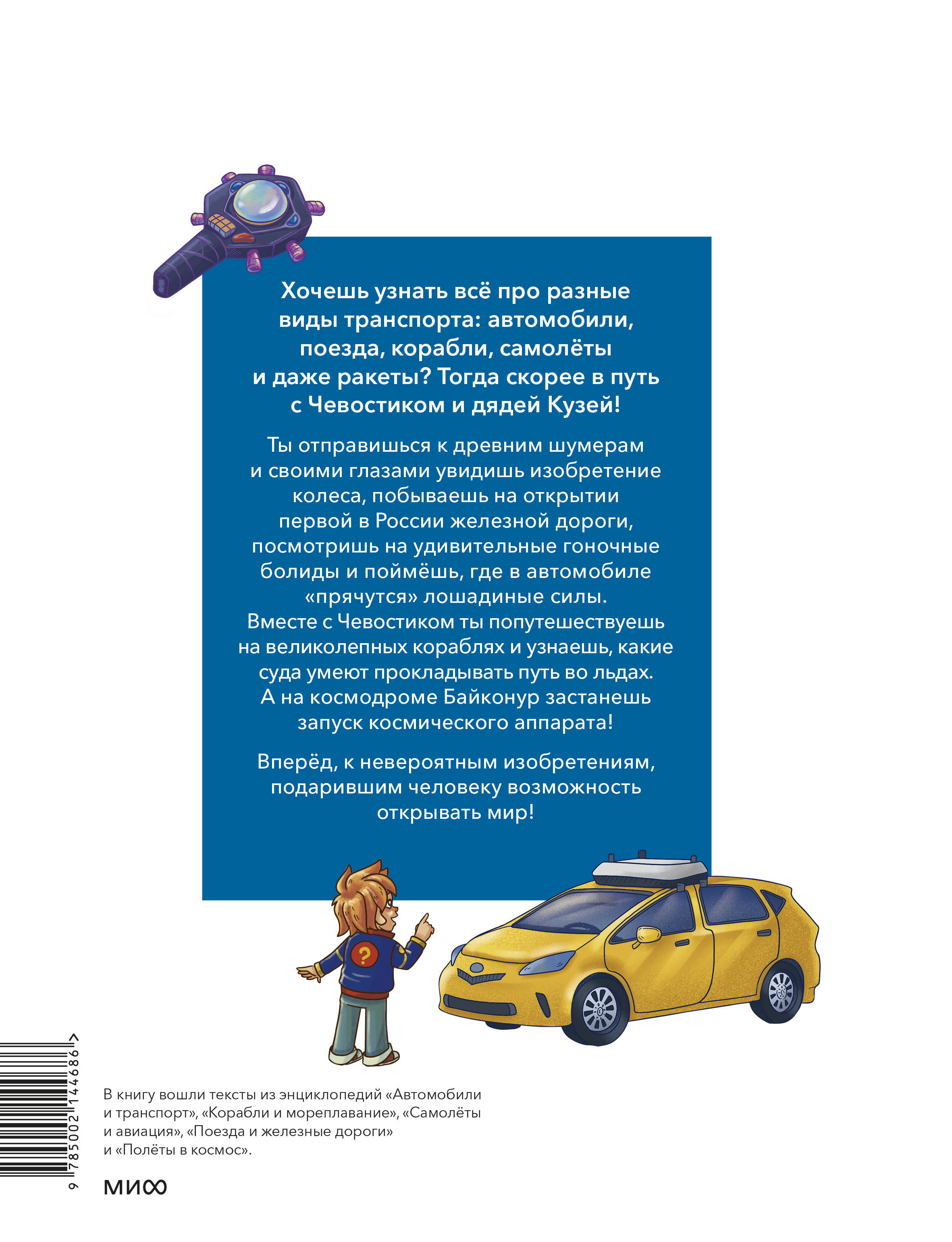 Автомобили, поезда, корабли, самолёты и даже космические аппараты Продолжение серии больших энциклопедий с Чевостиком Расскажет, где в автомобиле «прячутся» лошадиные силы и как изобрели колесо| Издательство | МАНН, ИВАНОВ И ФЕРБЕР ООО |