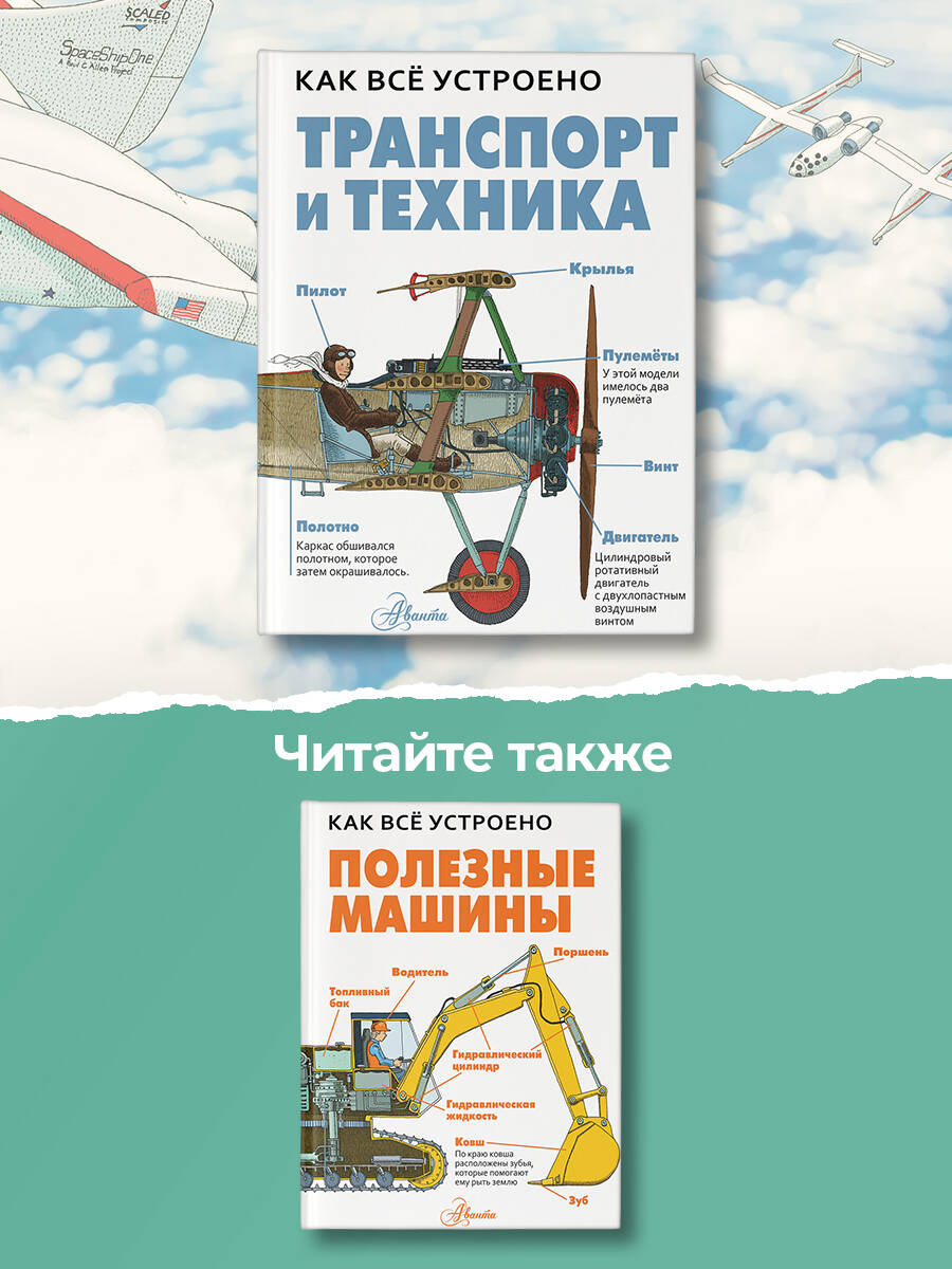 Задумывались ли вы когда-нибудь, как экипаж танка помещается внутри? Почему летают космические корабли? Как выглядит изнутри реактивный двигатель? Книга «Транспорт и техника» поможет вам найти ответы на эти и многие другие вопросы! Вы узнаете удивительные факты о самом разном транспорте: поездах, танках, самолётах, подводных лодках, автомобилях и даже космических кораблях. А главное - сможете увидеть каждую машину в разрезе и узнать, как она устроена и почему работает. Подробные иллюстрации продемонстрируют множество деталей, которые захочется разглядывать снова и снова!| Издательство | АСТ |