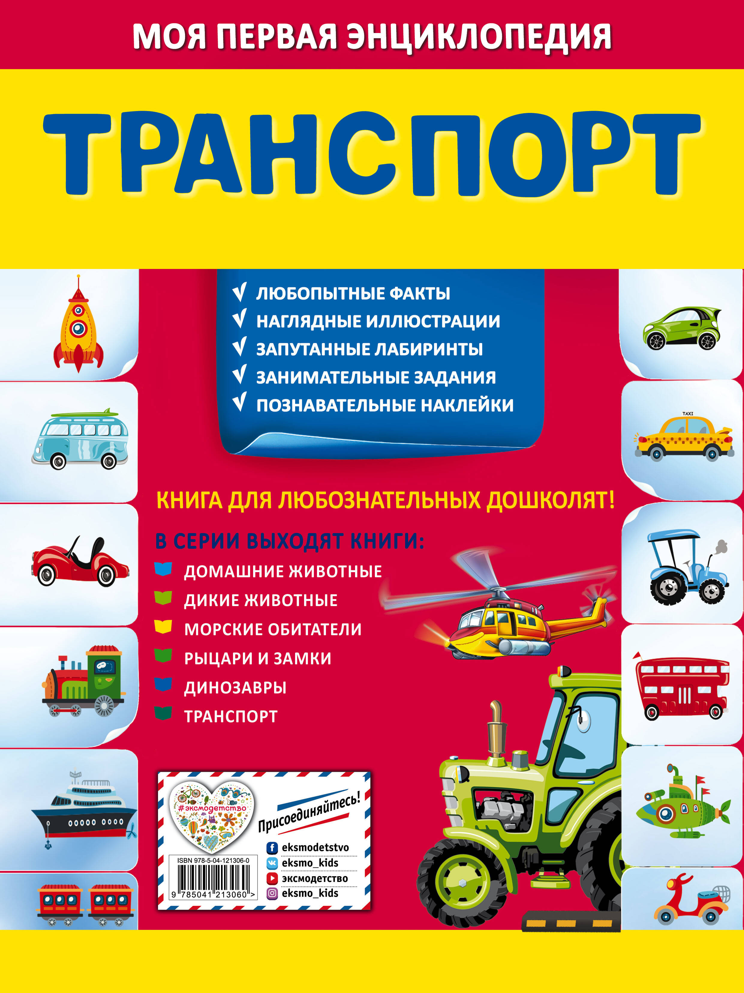 Книга включает в себя много любопытных фактов о разных видах наземного, воздушного и морского транспорта. Игровые разноплановые задания и яркие познавательные иллюстрации и наклейки помогут ребёнку быстро запомнить имеющуюся информацию. Запутанные лабиринты, интересные задания помогут любознательным дошколятам узнать, на что был похож первый автомобиль, какой транспорт удобнее всего для дальних путешествий, как называется самая маленькая машина, какая машина легко проедет по любому бездорожью и многое другое. Кроме того, занимаясь по этой книге, ребёнок получит первый опыт работы с энциклопедической литературой, что пригодится ему в дальнейшем. Приобретая эту книгу для своего ребёнка, вы: • поможете ему познакомиться с новым видом познавательной литературы, • научите его получать знания легко и весело, • сможете организовать малышу интересный полезный досуг, • привьете ребёнку любовь к книгам через игровую форму подачи материала, занимательные задания и наклейки.| Издательство | ООО "Издательство "Эксмо" |