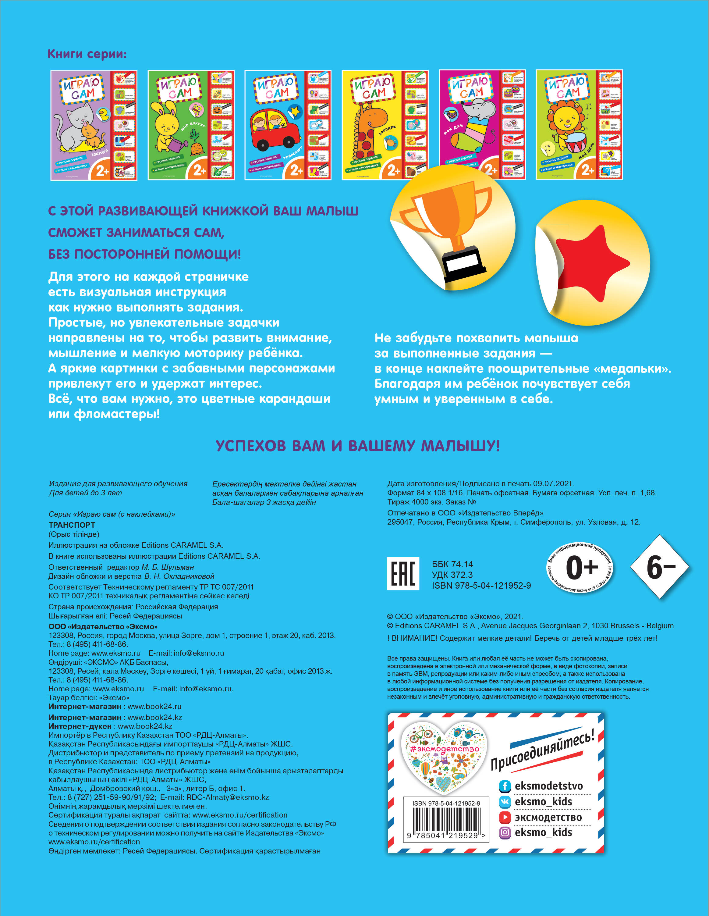 Вы хотите, чтобы ваш малыш весело и с пользой провёл время и при этом не отвлекал вас? Тогда вам пригодится эта книжка! Её особенность - красочные задания без слов. Иллюстрированная инструкция подскажет, что именно нужно сделать: пройти карандашиком через лабиринт, наклеить подходящие наклейки, раскрасить предметы по цветному контуру, найти правильные тени или даже дорисовать картинку! Простые, но интересные задания разовьют мелкую моторику, внимание, мышление ребёнка. А когда он похвастается своими успехами, взрослый сможет похвалить его и приклеить «поощрительные» наклейки в виде «медалей» и «кубков». Книги серии «Играю сам» - первый шаг к самостоятельности и уверенности в своих силах вашего малыша!| Издательство | ООО "Издательство "Эксмо" |
