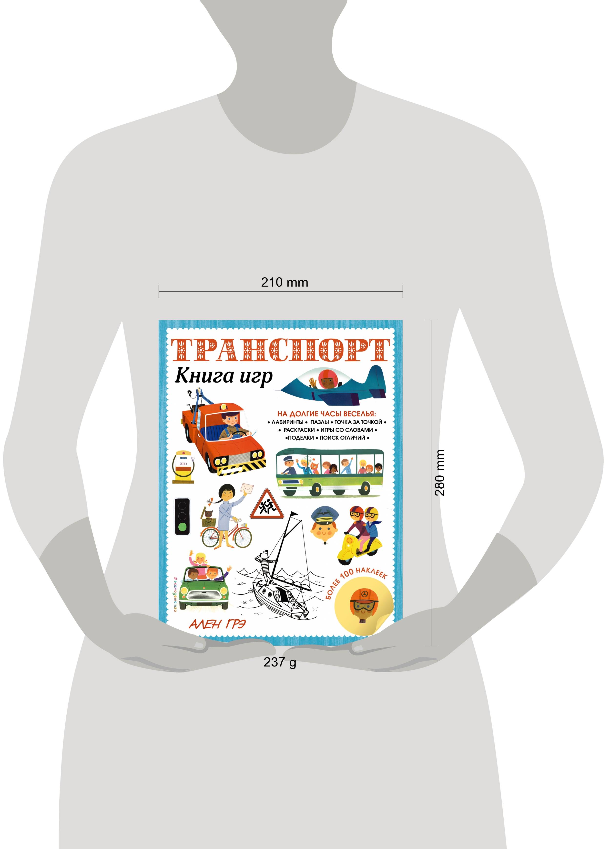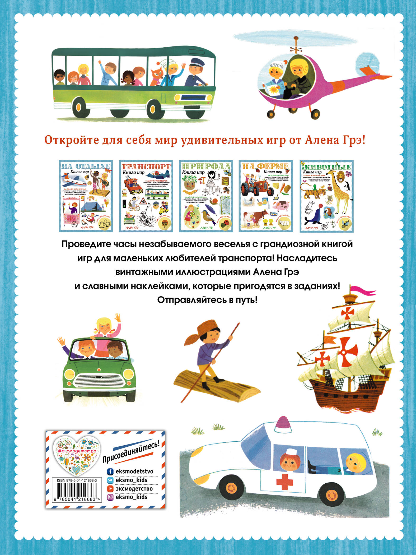 Хотите познакомить малыша с разными видами транспорта, понаблюдать за запуском ракеты и узнать, как выглядят поезда в разных странах? Узнавать новое веселее в эффективнее в игре - поэтому мы подготовили для вас целую книгу игр и увлекательных головоломок. В процессе игры ребенок не только разовьет моторику, внимательность и память, но и освоит важную тему. Лабиринты, отличия, сетки со словами, игры с тенями, несложные задания на счет и поиск отличий позволят весело провести время и с удовольствием порезвиться на просторах полей и пастбищ. Наклейки сделают игру еще увлекательнее - они пригодятся для выполнения заданий, а еще их можно просто наклеивать на странички, придумывая свои смешные истории в дороге, в небе и даже на воде. Все игры нарисованы замечательным художником Аленом Грэ, чьи работы по праву считаются классикой детской иллюстрации, книги изданы в более чем 20 странах и полюбились не одному поколению детей. Откройте для себя мир удивительных и познавательных игр от Алена Грэ. Насладитесь классикой винтажной иллюстрации и позвольте ребенку провести время весело и с пользой!| Издательство | ООО "Издательство "Эксмо" |