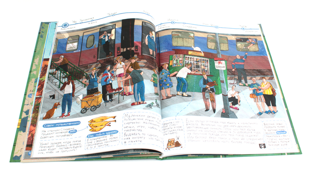 Комплект из 2 книг: «Транссиб. Поезд отправляется!» Транссибирская магистраль - самая длинная железная дорога в мире. Нулевой километр - в Москве, на Ярославском вокзале. Конечная станция - Владивосток - через 9288,2 километра. Между ними - мегаполисы и малые города, посёлки и деревни, тайга, горы, Байкал, степи, великие реки. Транссиб же подобен нити, что связывает столь разные края, их историю и жителей. И есть ли у него на самом деле конец? Ведь его пути разветвляются, сливаются, и объединяют между собой много разных стран. В создании этой книги, которую придумали авторы «Истории старой квартиры» Александра Литвина и Аня Десницкая, приняли участие жители городов и посёлков, где - на пару минут или полчаса - останавливается поезд Москва - Владивосток. Цифры, исторические факты и сведения о географии, которые можно найти в учебниках, дополнили реальные истории людей, связанных с Транссибом, рассказы о любимых местах, рецепты блюд и советы, что посмотреть, которыми щедро поделились дети и взрослые. «Смотри: Байкал! Книга-путешествие» Величественный и неповторимый Байкал, красивейшее и самое глубокое озеро в мире, - достояние всей планеты. Но для каждого из нас Байкал - свой, особенный. Хочешь и ты узнать свой Байкал? Тогда тебе нужен хороший проводник. Уникальное книжное путешествие, в которое ты отправляешься, подготовит тебя к встрече с настоящим Байкалом: мы собрали самые разные факты - об истории озера, его характере и обитателях, о маршрутах разной степени сложности - и постарались рассказать о проблемах, которые стоят перед Байкалом прямо сейчас. Их столько, что огромному древнему озеру очень нужна сегодня и твоя помощь. И мы подскажем тебе, как помогать Байкалу и участвовать в его жизни из любой точки Земли. Аня и Варя Кендель - российские художницы, сёстры-близнецы, которые очень любят путешествовать и вместе делают иллюстрации для книг. В 2021 году Аня пять месяцев провела на берегу Байкала, а за два года до этого прошла на байдарке 400 километров вдоль западного берега. В том походе и родилась идея сделать книгу о Байкале.| Издательство | Самокат |