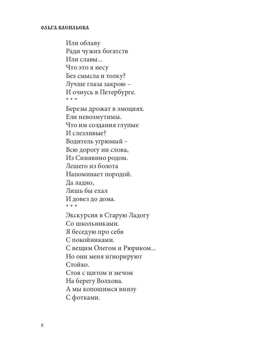 Новая книга Ольги Васильевой - воплощение ощущения жизни как путешествия, транзита из одного мира в другой, путешествия прекрасного и внушающего страх, трагического, смешного и мужественного, в настоящем времени и в истории. Для тех, кто не может без поэзии и ее присутствия в жизни.| Издательство | Т8 RUGRAM |