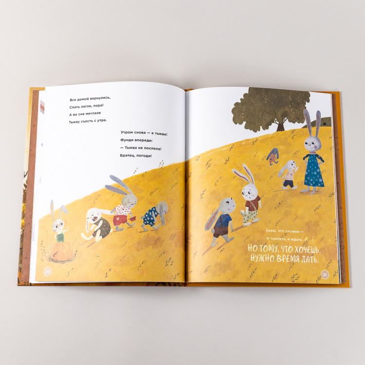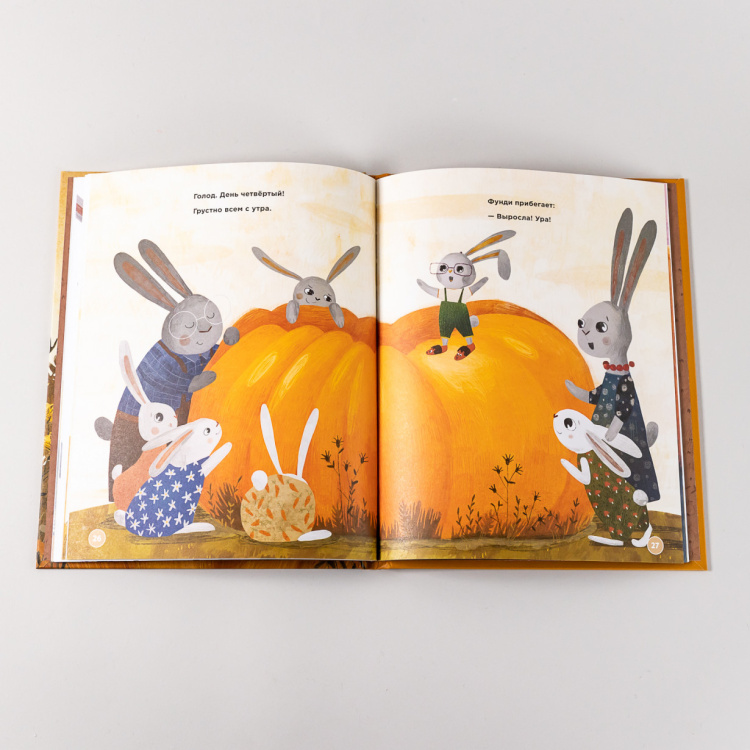Фунди - самая младшая в большой и дружной семье кроликов. И самая умная - с этим согласны все! Поэтому именно она придумала, как же кроликам следует поступить, когда случилась засуха и весь урожай погиб, а уцелела всего лишь одна маленькая тыковка. Вместо того, чтобы съесть ее сразу, по настоянию Фунди кролики решили дать тыкве еще подрасти, и спустя некоторое время маленькая тыква превратилась в огромную, которая смогла не только накормить все большое кроличье семейство, но и позволила им сделать запасы на будущее.