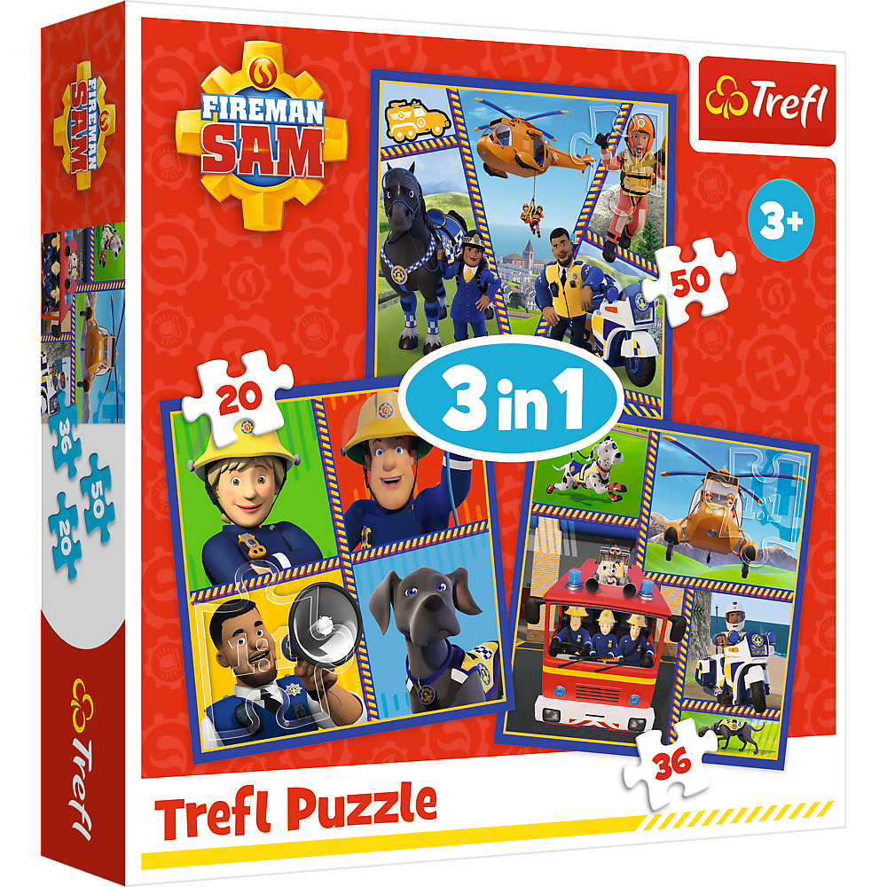 Как интерактивная занятие, головоломки - это интересный способ развить важные когнитивные навыки посредством практического обучения. Пазлы идеально подходят для собирания в одиночку или в группе. Набор пазлов 3-в-1 Пожарник Сэм. Количество элементов: 20+36+50. Размер готового пазла: 20 x 19,5 см.