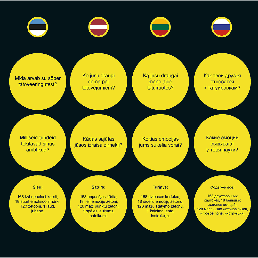 Как твои друзья относятся к татуировкам? Какие эмоции вызывают у тебя пауки? Цель игры - лучше узнать себя и других игроков, весело проводя время.