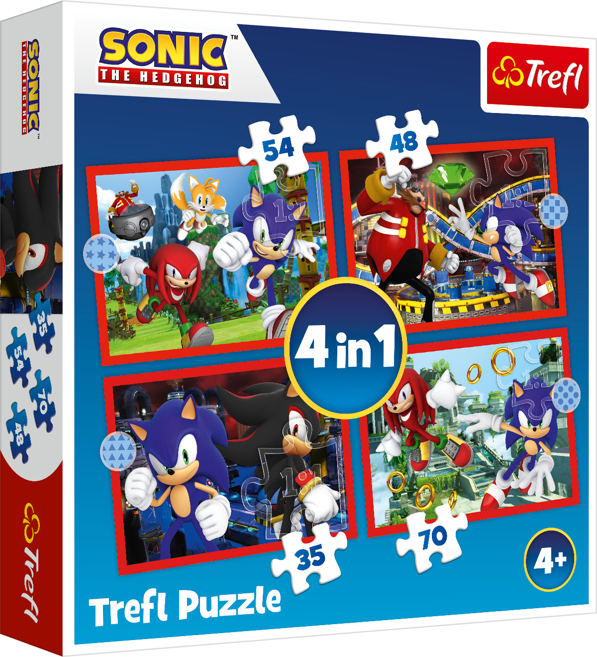 Как интерактивная занятие, головоломки - это интересный способ развить важные когнитивные навыки посредством практического обучения. Пазлы идеально подходят для собирания в одиночку или в группе. Комплект пазлов 4 в 1 Соник. Количество элементов: 35+45+54+70. Набор из четырёх картинок - это замечательная идея для игры и совершенствования навыков складывания пазлов с разным количеством деталей. Размер готового пазла: 28,5x20,5 см.