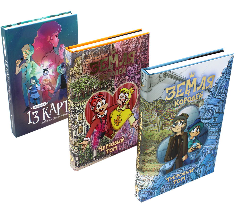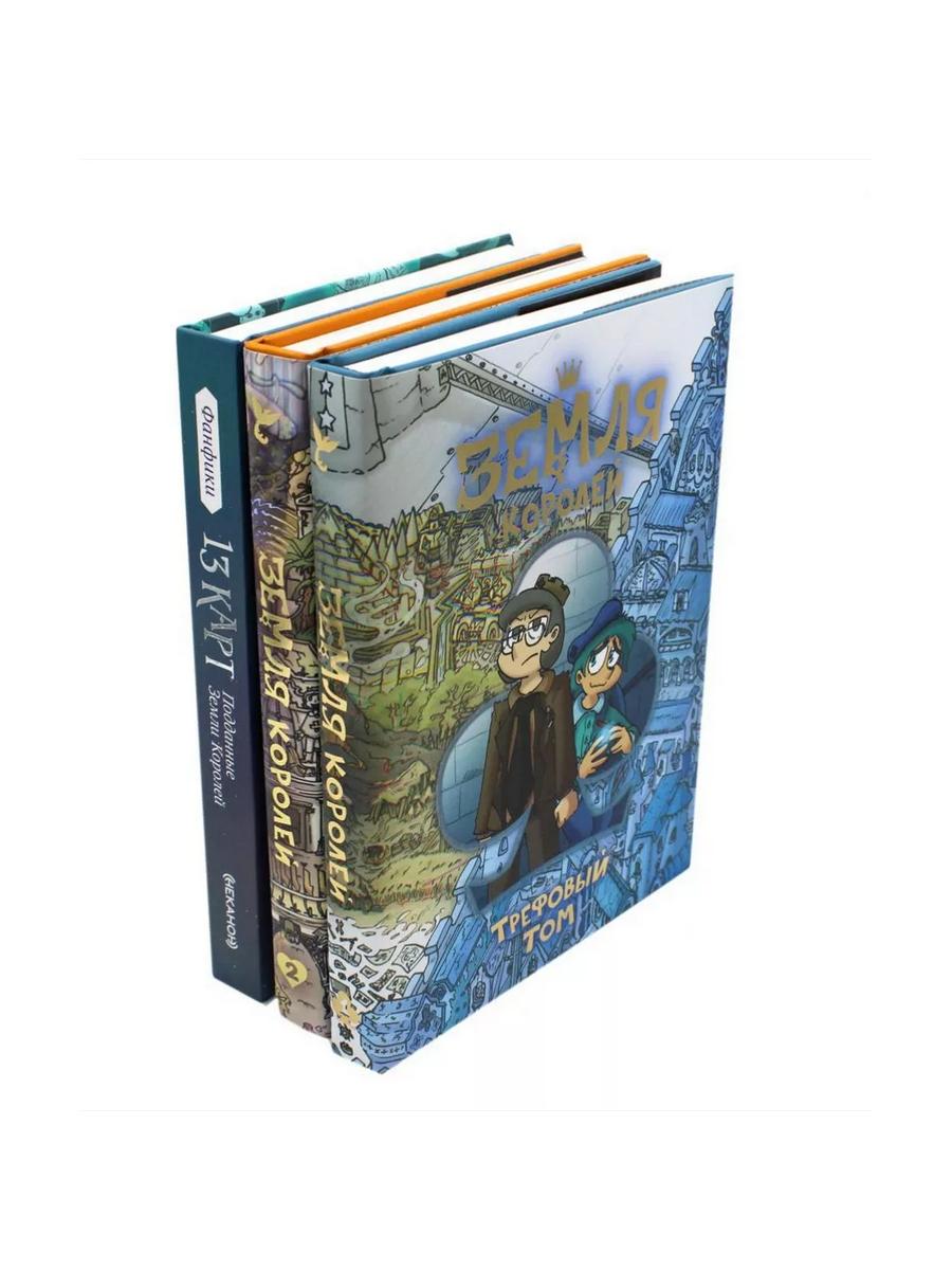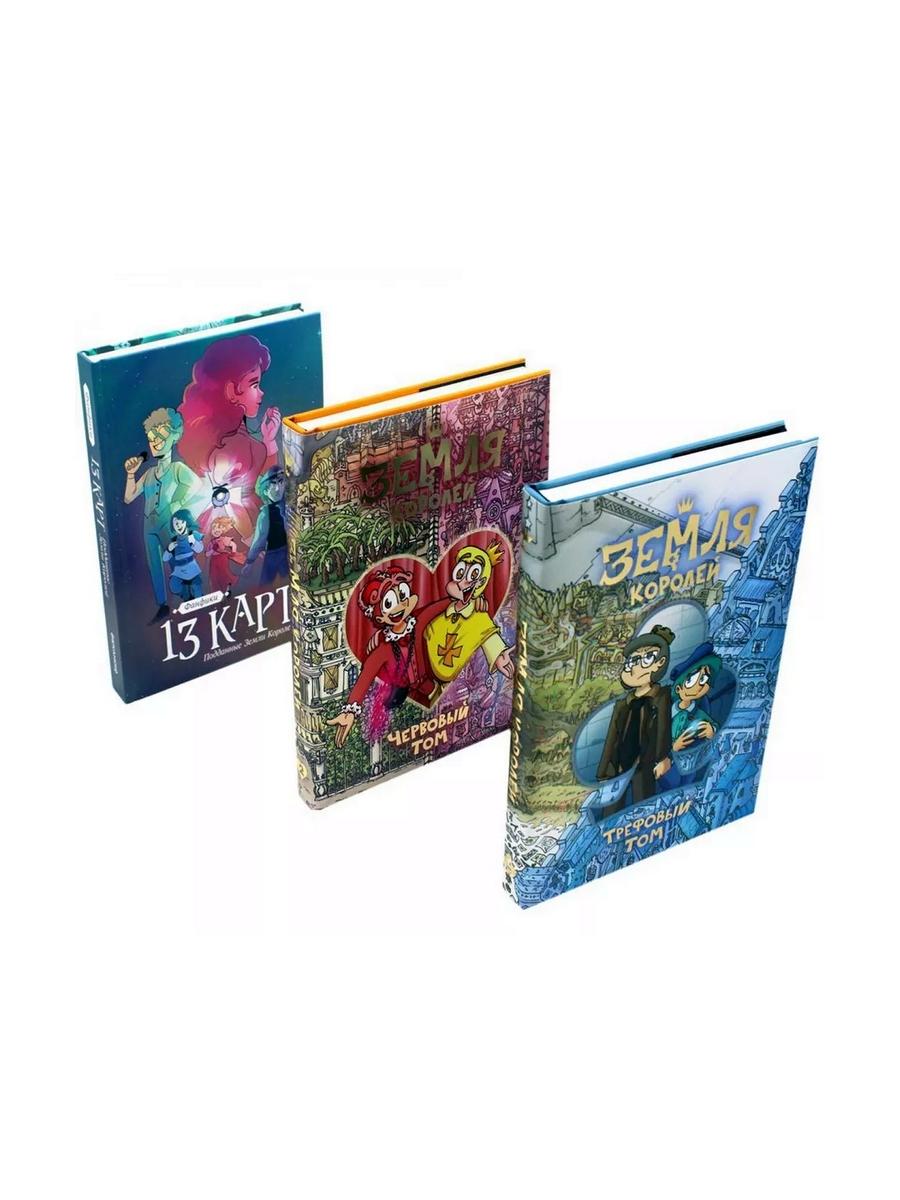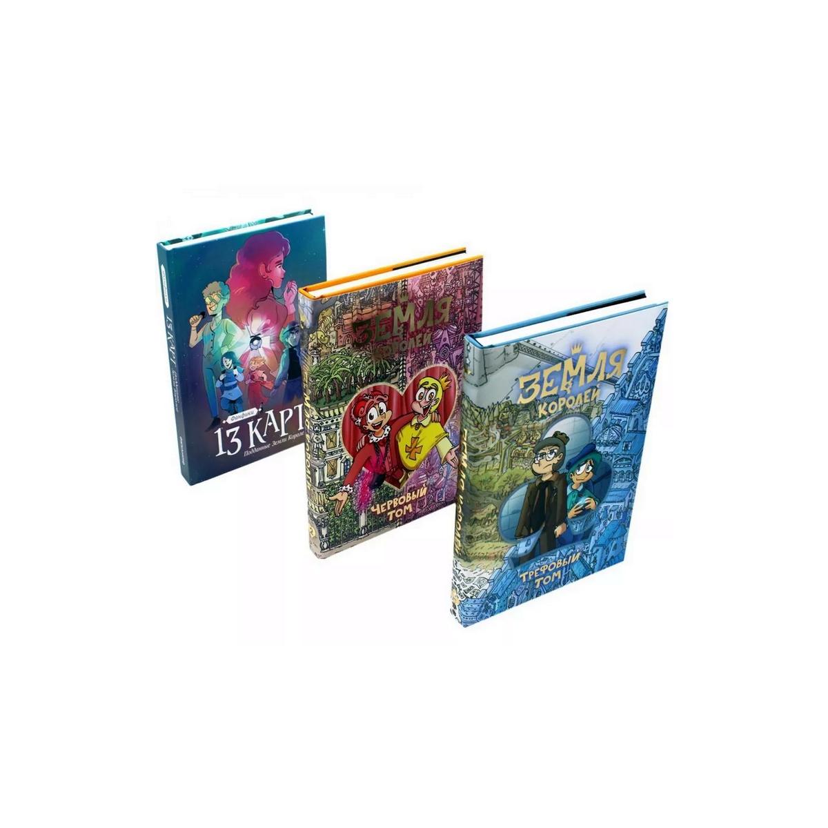 Комплект состоит из трех книг: двулогии «Трефовый и червовый том» и «13 карт. Фанфики. Подданные Земли Королей». Восемь карточных олицетворений, валеты и короли четырех мастей с абсолютно разными характерами и темпераментами, оказались заперты друг с другом в замкнутом параллельном измерении, владея, при этом, мощьным источником энергии, способным менять окружающую реальность, территория и сила ограничены, в отличии от непомерногоэго и амбиций некоторых героев, как скоро возникнет конфликт и во что он выльется? В сборнике «13 карт. Фанфики» собраны тринадцать самых ярких работ из тех, что прислали на конкурс. Такие разные, все истории по-своему индивидуальны и представляют самые разные захватывающие сюжеты и жанры. Здесь вы найдете и трагикомедию, и мелодраму, как вопросы поиска себя в этом мире, так и конфликт человека и государства. Каждую историю дополняют иллюстрации от разных художников, а в середине вас ждут цветные страницы с косплеерами, устроившими съемку специально для нашего сборника!| Издательство | Жар-птица. Комиксы |