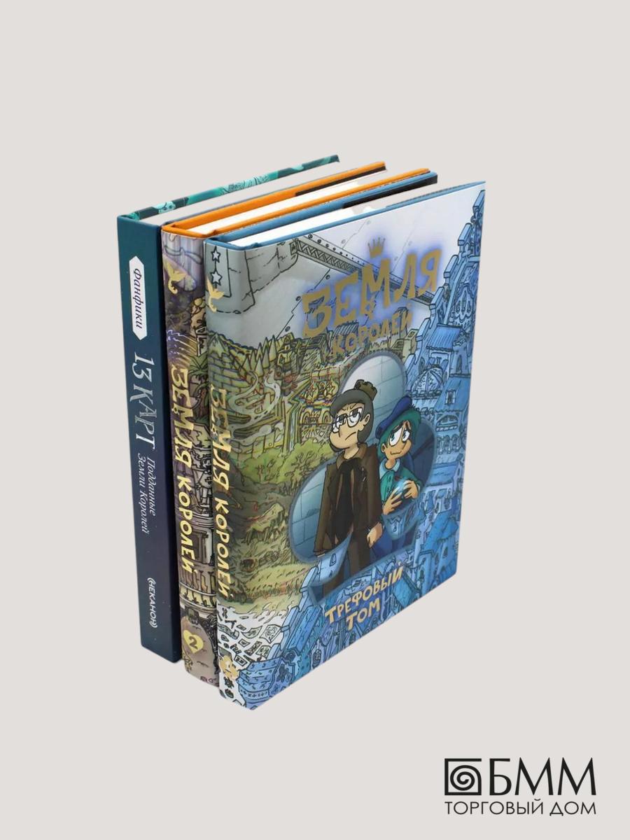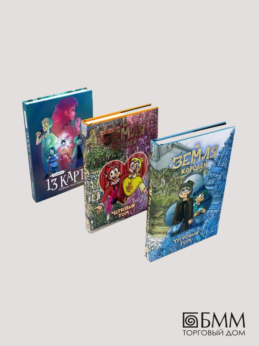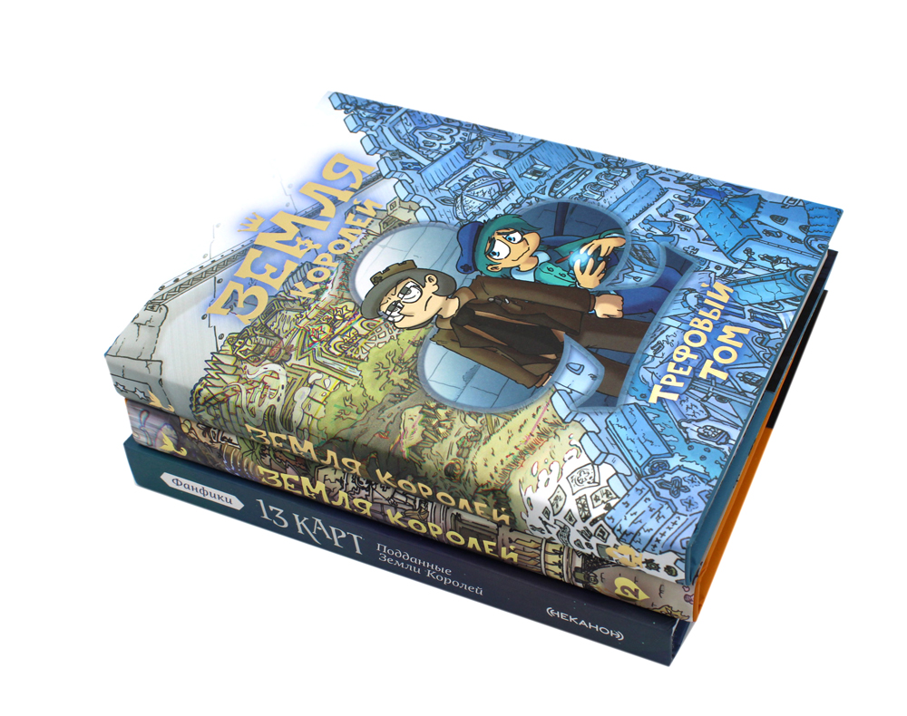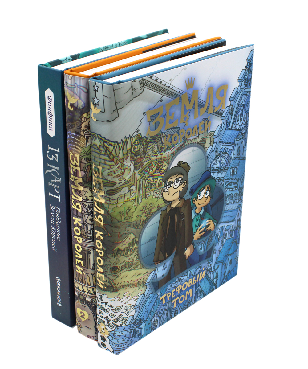 Комплект состоит из трех книг: двулогии «Трефовый и червовый том» и «13 карт. Фанфики. Подданные Земли Королей». Восемь карточных олицетворений, валеты и короли четырех мастей с абсолютно разными характерами и темпераментами, оказались заперты друг с другом в замкнутом параллельном измерении, владея, при этом, мощьным источником энергии, способным менять окружающую реальность, территория и сила ограничены, в отличии от непомерногоэго и амбиций некоторых героев, как скоро возникнет конфликт и во что он выльется? В сборнике «13 карт. Фанфики» собраны тринадцать самых ярких работ из тех, что прислали на конкурс. Такие разные, все истории по-своему индивидуальны и представляют самые разные захватывающие сюжеты и жанры. Здесь вы найдете и трагикомедию, и мелодраму, как вопросы поиска себя в этом мире, так и конфликт человека и государства. Каждую историю дополняют иллюстрации от разных художников, а в середине вас ждут цветные страницы с косплеерами, устроившими съемку специально для нашего сборника!| Издательство | Жар-птица. Комиксы |