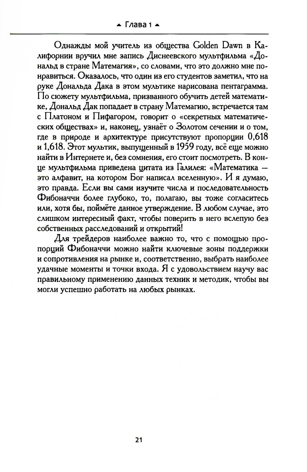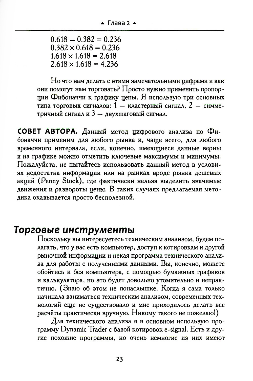 В книге показано, как применять последовательность Фибоначчи на графиках цены и какие торговые сигналы можно в результате получить, как использовать комбинацию последовательностей Фибоначчи одновременно на осях времени и цены, что позволяет найти более надежные торговые сигналы. Использование предложенных методик помогает более точно определить моменты для входа в рынок и выхода из него.