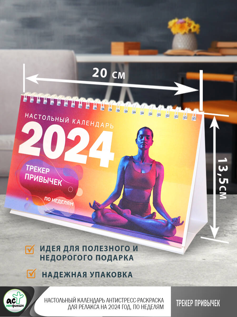 Трекер привычек. Настольный календарь антистресс-раскраска для релакса на 2024 год, по неделям