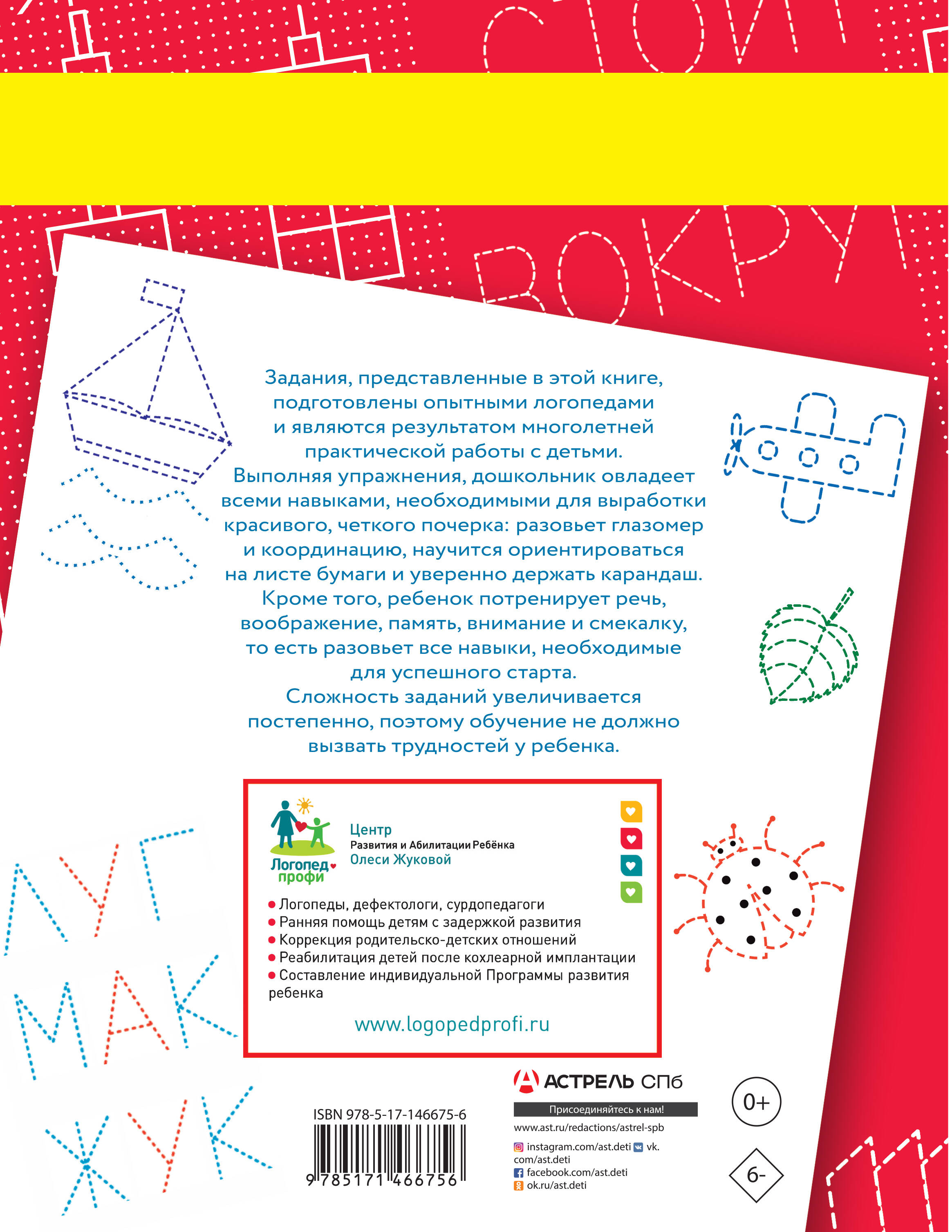Задания, представленные в этой книге, подготовлены опытными логопедами и являются результатом многолетней практической работы с детьми. Выполняя упражнения, дошкольник овладеет всеми навыками, необходимыми для выработки красивого, четкого почерка, научится писать простые слова и предложения, потренирует память, внимание и речь. Сложность заданий увеличивается постепенно, поэтому обучение не должно вызвать трудностей у ребенка. Для дошкольного возраста.| Издательство | ИЗДАТЕЛЬСТВО "АСТ" |