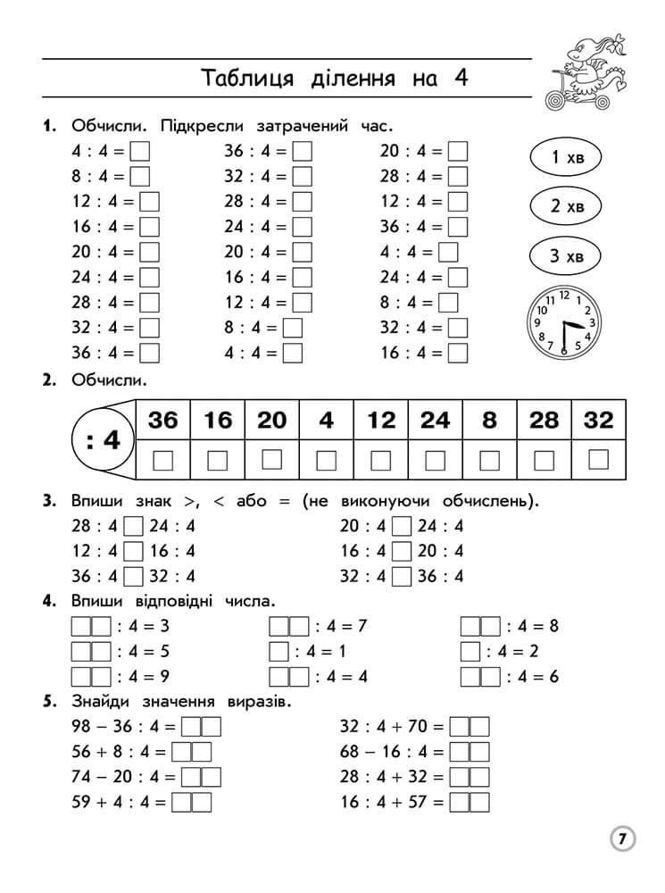 СХВАЛЕНО МІНІСТЕРСТВОМ ОСВІТИ І НАУКИ УКРАНИ ТА ВІДПОВІДАЄ КОНЦЕПЦІЇ НОВОЇ УКРАЇНСЬКОЇ ШКОЛИ. Пропустив урок через хворобу? Неуважно слухав? Забув? Цей посібник допоможе усунути всі недоопрацювання учня і забезпечить автоматизацію відповідних навичок. Запорукою успішного навчання є сучасна методика, покладена в основу посібника. Комплексний тренажер з математики навчить розуміти, аналізувати, обчислювати швидко і правильно. Завдання посібника згруповані за принципом поступового ускладнення. Виконуючи завдання різних типів та рівнів, ваша дитина зможе: підготуватися до контрольних і самостійних робіт; поглибити знання; закріпити практичні уміння і навички. До складу тренажера увійшли розділи: таблиця множення; таблиця ділення; додавання та віднімання двоцифрових та трицифрових чисел; множення та ділення двоцифрових та трицифрових чисел; число та його частини; різні типи задач. Посібник можна використовувати як на уроках, так і для самостійної роботи вдома. Чому варто використовувати цей тренажер? Посібник-тренажер сприяє доведенню до автоматизму необхідних базових знань та вмінь із математики. Завдання тренажера відповідають чинній програмі Нової української школи.| Дата выпуска | 0000-00-00 |