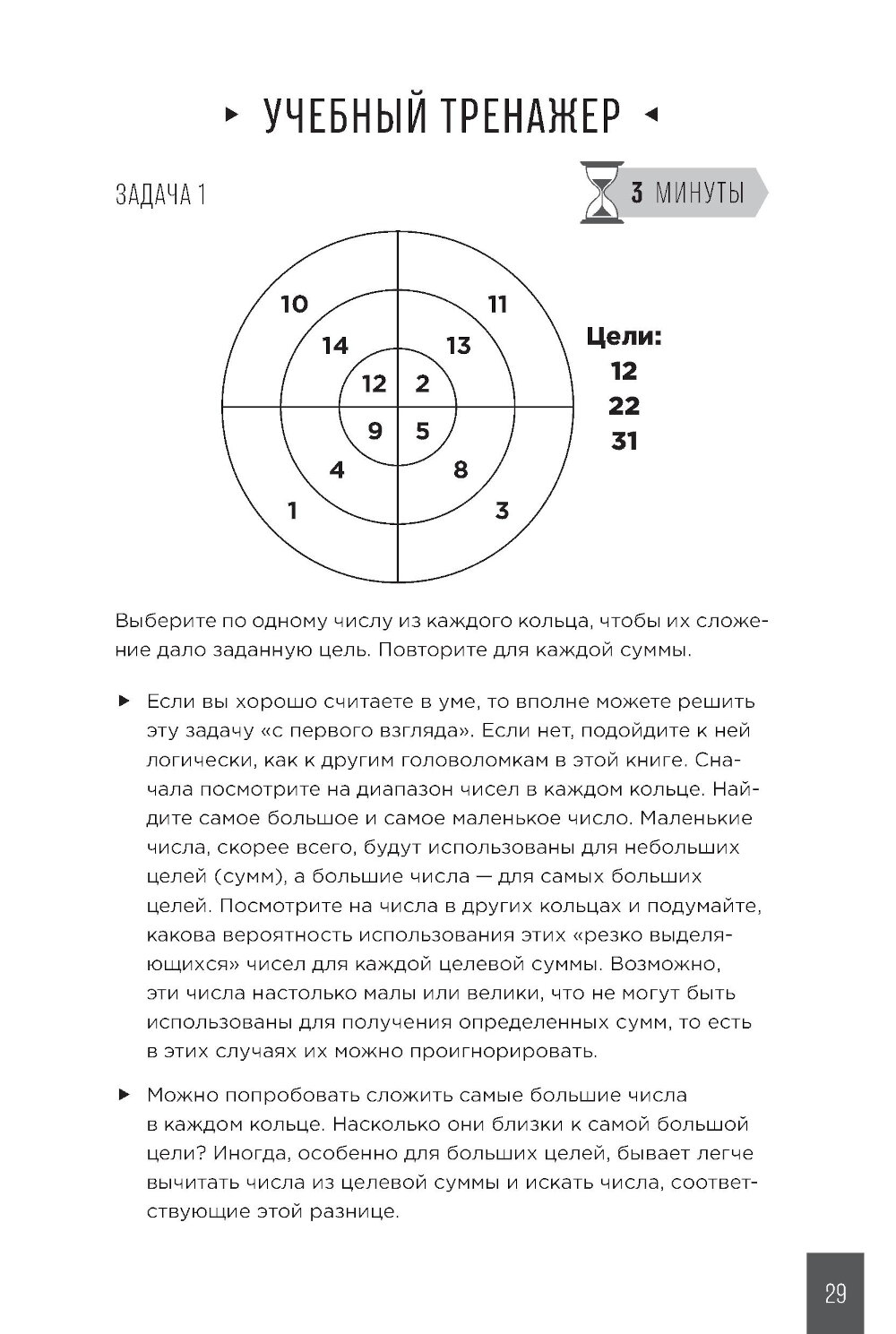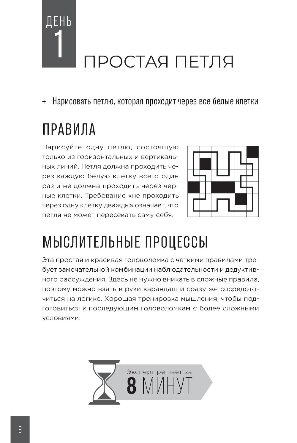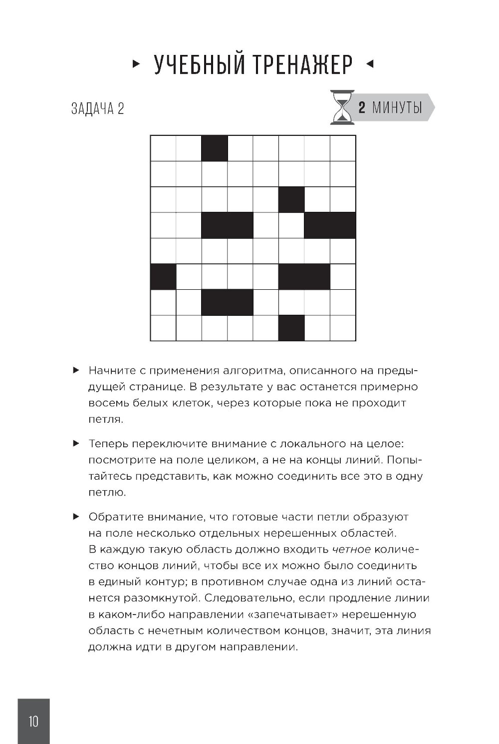 Это сборник упражнений для интенсивной тренировки мозга, рассчитанный на 40 дней. С помощью этих увлекательных головоломок вы сможете развить гибкость мышления, логику и сообразительность. Разные варианты судоку, хитори, «сапера», лабиринты всех видов и другие упражнения тренируют мозг, повышая эффективность его работы, а также позволяют расслабиться и отвлечься. Гарет Мур подробно описывает алгоритм решения каждой задачи, дает подсказки и советы, а также указывает приблизительное время, которое в среднем занимает одна тренировка.| Издательство | Альпина Паблишер |