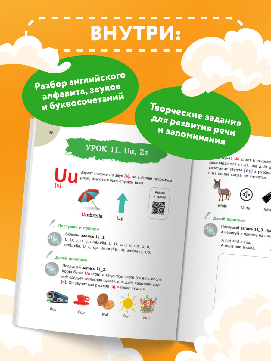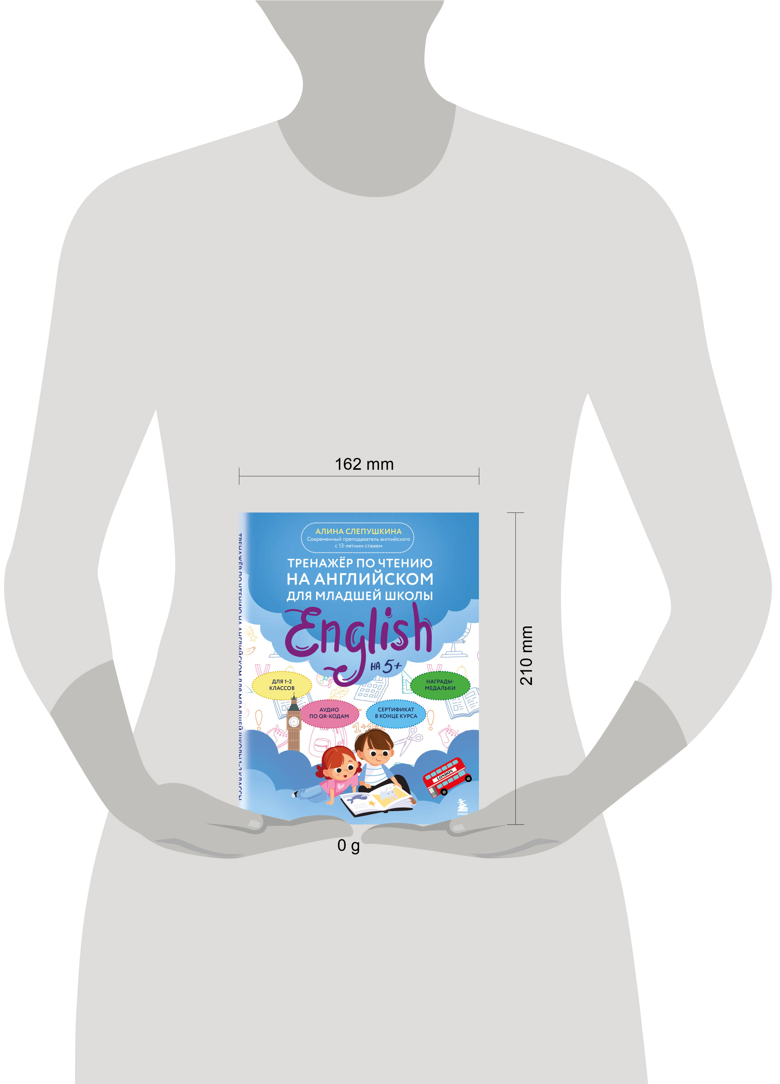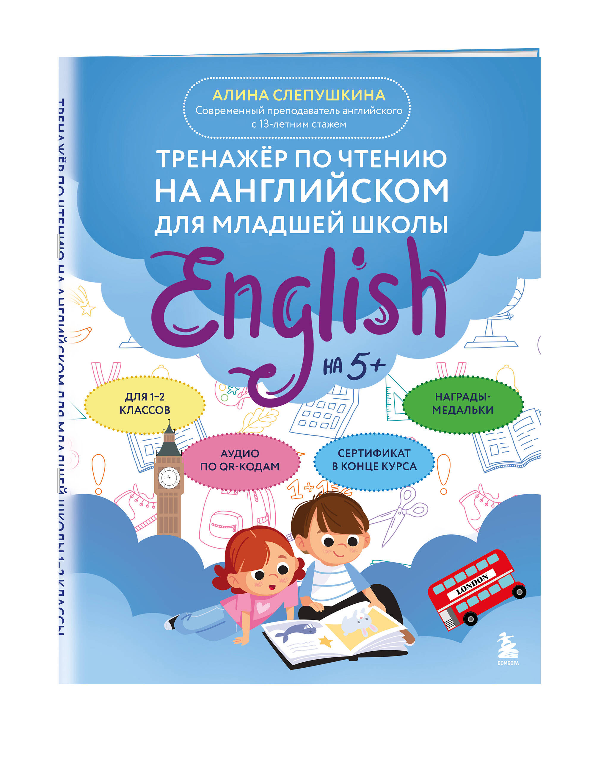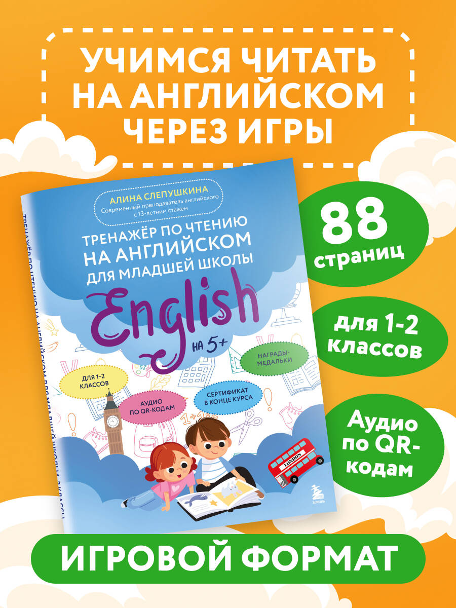 Как легко и играючи обучить ребенка чтению на английском? Достаточно заниматься по этому тренажеру! Книга в ваших руках наполнена яркими заданиями, аудированием по QR-кодам и приятной системой мотивации для ребенка. Тренажер охватывает все буквы алфавита и часто используемые буквосочетания, помогает научиться читать и говорить правильно. В книге 24 урока, в конце каждого предусмотрено место для награды - медальки, которую ребенок с родителем вырезает и приклеивает. По прошествии всех уроков ученик получает сертификат, расположенный в конце книги. Алина Слепушкина - преподаватель английского языка для детей с 13-летним опытом. Главная цель автора - увлечь ребенка и показать, что английский язык может быть веселым, а обучение - легким. Это не просто тренажер, а увлекательное путешествие в мир английского языка, где каждый урок становится шагом к уверенности и радости от чтения.| Издательство | ООО "Издательство "Эксмо" |