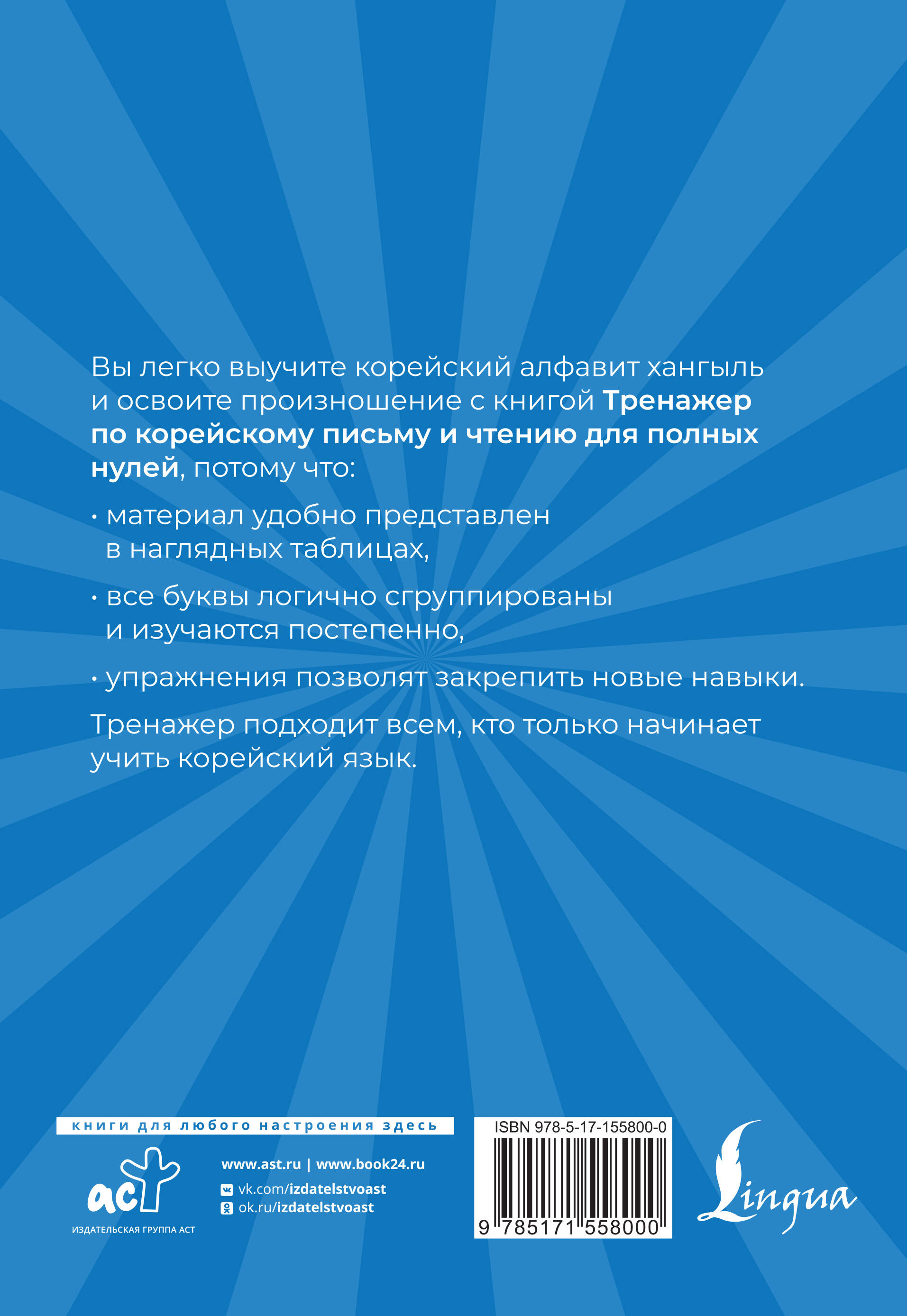 Аннотация: Тренажер по корейскому письму и чтению для полных нулей