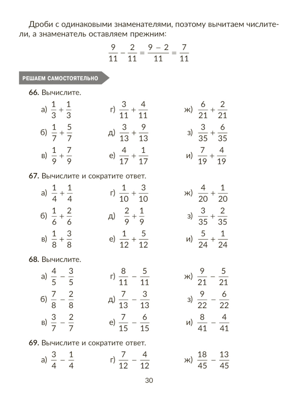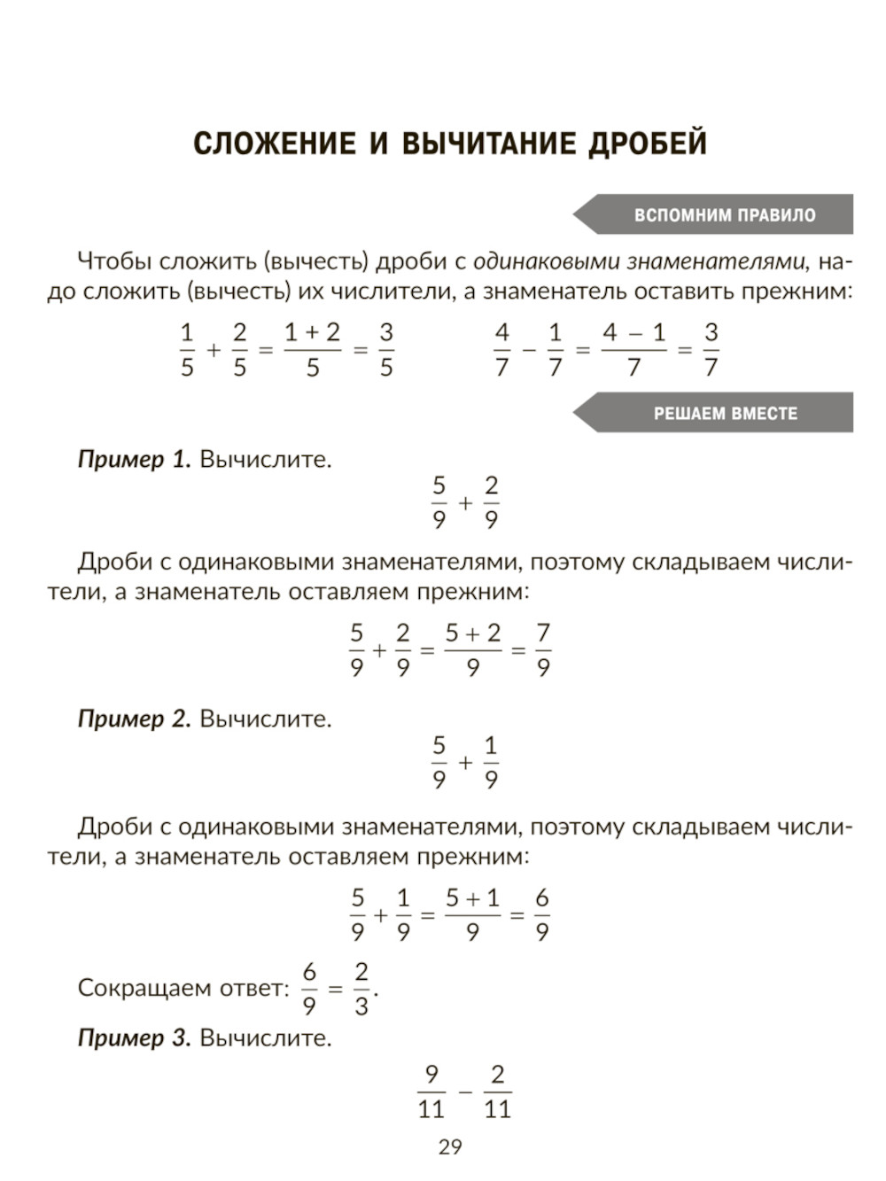 Тренажер по математике: Действия с дробями. Повторяем правила, решаем примеры и задачи. 5 кл
