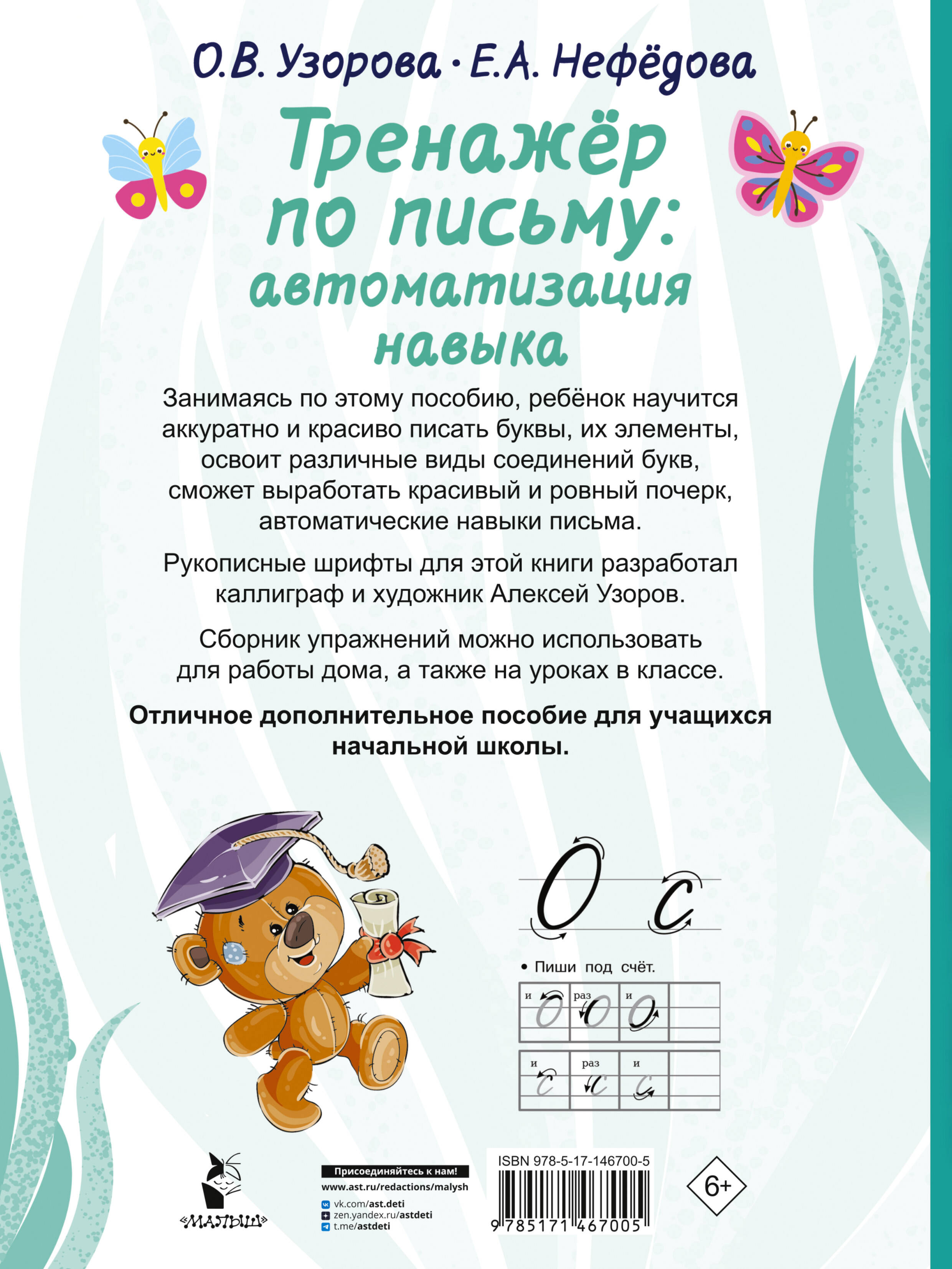 Учебное пособие «Тренажёр по письму: автоматизация навыка» представляет собой рабочую тетрадь, в которой ученики потренируются аккуратно и красиво писать буквы, их элементы, варианты соединений, а также слоги, слова и предложения.| Издательство | АСТ |