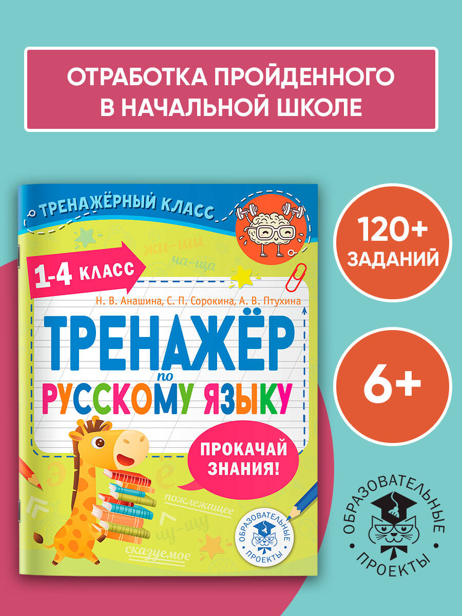 В тренажёре много интересных упражнений по курсу 1-4 классов, благодаря которым школьники: • повторят пройденный материал • закрепят учебные навыки • научатся применять правила русского языка • станут писать грамотнее • будут заниматься с интересом и удовольствием Тренажёр идеально подходит для учащихся и родителей, желающих помочь своим детям преодолеть трудности в освоении школьной программы, а также учителей начальной школы. Задания можно выполнять как дома, так и на уроках, что делает его универсальным инструментом для обучения. Одно из главных преимуществ нашего тренажёра - возможность разрезать его на отдельные карточки. Это позволяет детям видеть объём работы и не бояться его. Превратите обучение в увлекательное приключение с нашим тренажёром по русскому языку!| Издательство | Издательство "АСТ" |