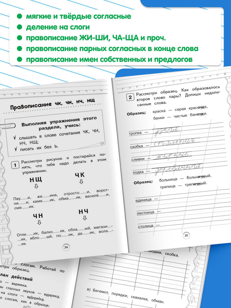 Пособие по русскому языку от издательства «Эксмо» подготовлено в соответствии с требованиями ФГОС для начальной школы и может быть использовано с любым из действующих учебников для 1 класса. Удобный тренажер с интересным современным макетом поможет ребёнку улучшить грамотность, восполнить пробелы, углубить и систематизировать знания. Занимаясь, школьник не только отработает основные темы школьной программы: правописание ЖИ-ШИ, ЧА-ЩА, ЧУ-ЩУ, ЧК, ЧН, НЧ, НЩ, парных согласных в конце слова, имен собственных, предлогов и др., но и научится работать по плану, то есть выполнять определенный алгоритм действий, который поможет ему осознанно применять правила. Когда навык грамотного письма будет доведен до автоматизма, результат в виде твердых знаний и отличных оценок не заставит себя ждать.| Издательство | ООО "Издательство "Эксмо" |