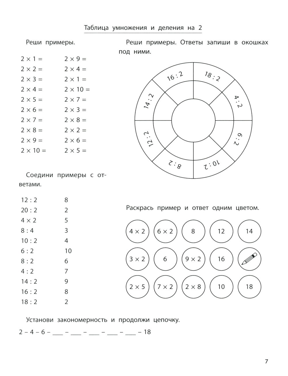 Это пособие поможет детям усвоить таблицу умножения и деления. Главная цель тренажёра - сформировать навыки быстрого и безошибочного решения примеров на умножение и деление. Для успешной отработки этого навыка в пособии представлены разнообразные задания.