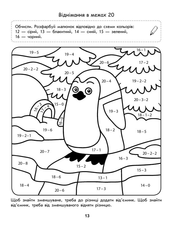 ВІДПОВІДАЄ КОНЦЕПЦІЇ НОВОЇ УКРАЇНСЬКОЇ ШКОЛИ. Тренажер-розмальовка - це сучасне навчання методом гри та ціла колекція веселих малюнків для першокласників. На кожній сторінці книги подано окрему тему відповідно до оновленої програми початкової школи. Тренажер спонукає дитину до усвідомленого закріплення теоретичної бази і пошуків правильної відповіді. Результатом роботи над завданням буде яскравий малюнок. Завдання тренажера направлені на активізацію зорової пам'яті та формування навичок роботи олівцем. Здається, ніби це лише гра, але непомітно для себе дитина починає звертати увагу на деталі, швидше знаходити закономірність, доводити до автоматизму навички лічби. Завдяки цьому тренажеру ваша дитина зможе опанувати такі теми: геометричні фігури; числова послідовність; математичні вирази; додавання та віднімання в межах 10; додавання та віднімання в межах 20.| ISBN | 978-617-7385-04-1 |