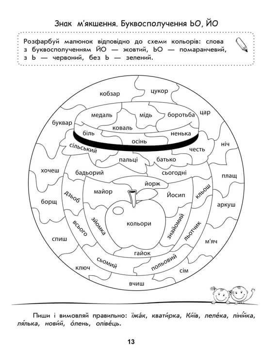 ВІДПОВІДАЄ КОНЦЕПЦІЇ НОВОЇ УКРАЇНСЬКОЇ ШКОЛИ. Тренажер-розмальовка - це сучасне навчання методом гри та ціла колекція веселих малюнків для першокласників. На кожній сторінці книги подано окрему тему відповідно до оновленої програми початкової школи. Тренажер спонукає дитину до усвідомленого закріплення теоретичної бази і пошуків правильної відповіді. Результатом роботи над завданням буде яскравий малюнок. Завдання тренажера направлені на активізацію зорової пам'яті та формування навичок роботи олівцем. Здається, ніби це лише гра, але непомітно для себе дитина починає звертати увагу на деталі, швидше знаходити закономірність, відчувати відтінки слова. Завдяки цьому тренажеру ваша дитина зможе опанувати такі теми: українська абетка; букви і буквосполучення; поділ слів на склади; антоніми, синоніми; апостроф; знак м'якшення; правила переносу; правопис слів з малої та великої літери; наголос.| ISBN | 978-617-7385-08-9 |