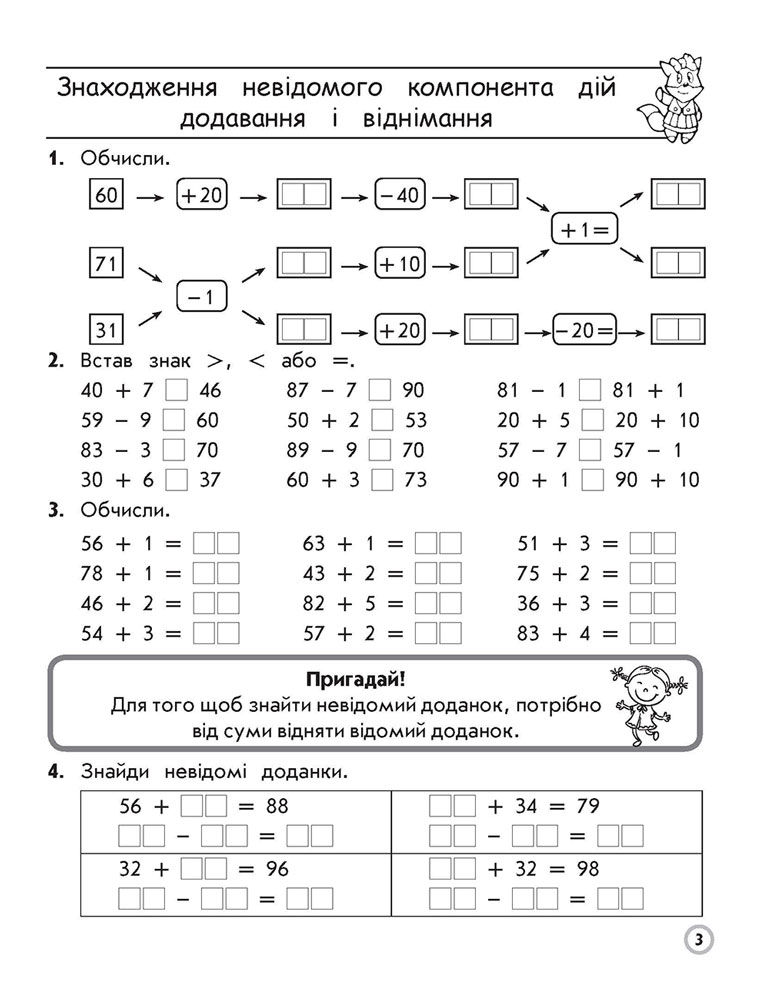 Тренажер з математики. Додавання і віднімання в межах 100 з переходом через розряд