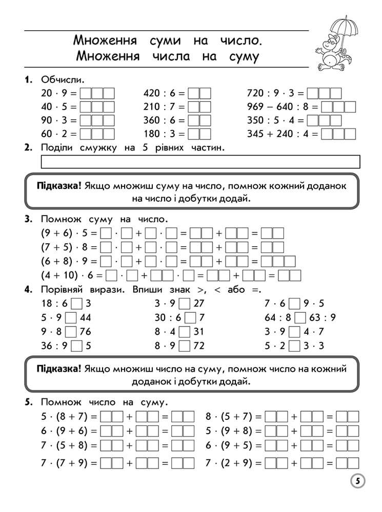 ВІДПОВІДАЄ КОНЦЕПЦІЇ НОВОЇ УКРАЇНСЬКОЇ ШКОЛИ. Ефективний тренажер для найвищих знань з математики! Завдяки цьому посібнику школярик: автоматизує навички множення та ділення двоцифрових і трицифрових чисел; познайомиться з поняттям «частина числа»; підготується до самостійних та контрольних робіт. До складу тренажера увійшли розділи: усне і письмове множення та ділення; операції з двоцифровими та трицифровими та трицифровими числами; число та його частини; корисні підказки. Посібник можна використовувати як на уроках, так і для самостійної роботи вдома.Чому варто використовувати цей тренажер? Посібники-тренажери сприяють доведенню до автоматизму необхідних базових знань та вмінь із математики. Завдання тренажера відповідають чинній програмі Нової української школи.| ISBN | 978-617-7670-68-0 |